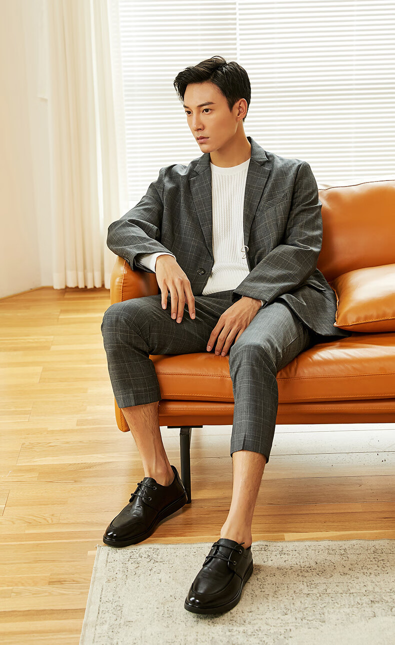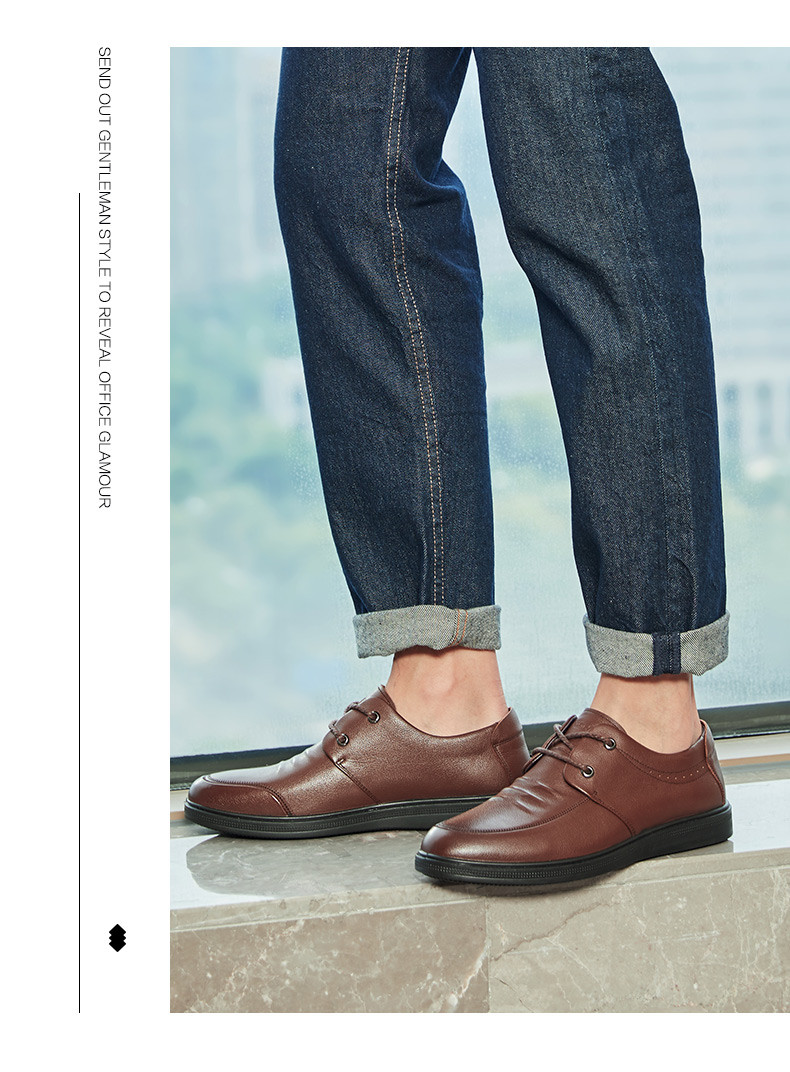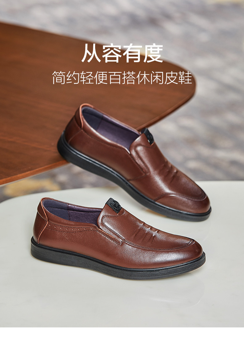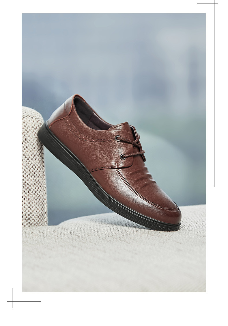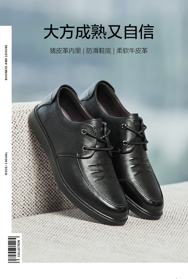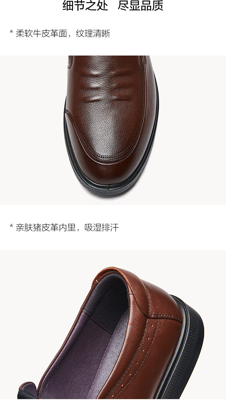 Kangnai Men's Casual Leather Shoes Business Casual Shoes Round Toe Comfortable Cowhide Soft Sole Leather Shoes Dad Shoes 18205074 Red Brown 42