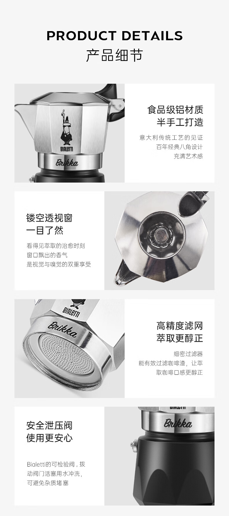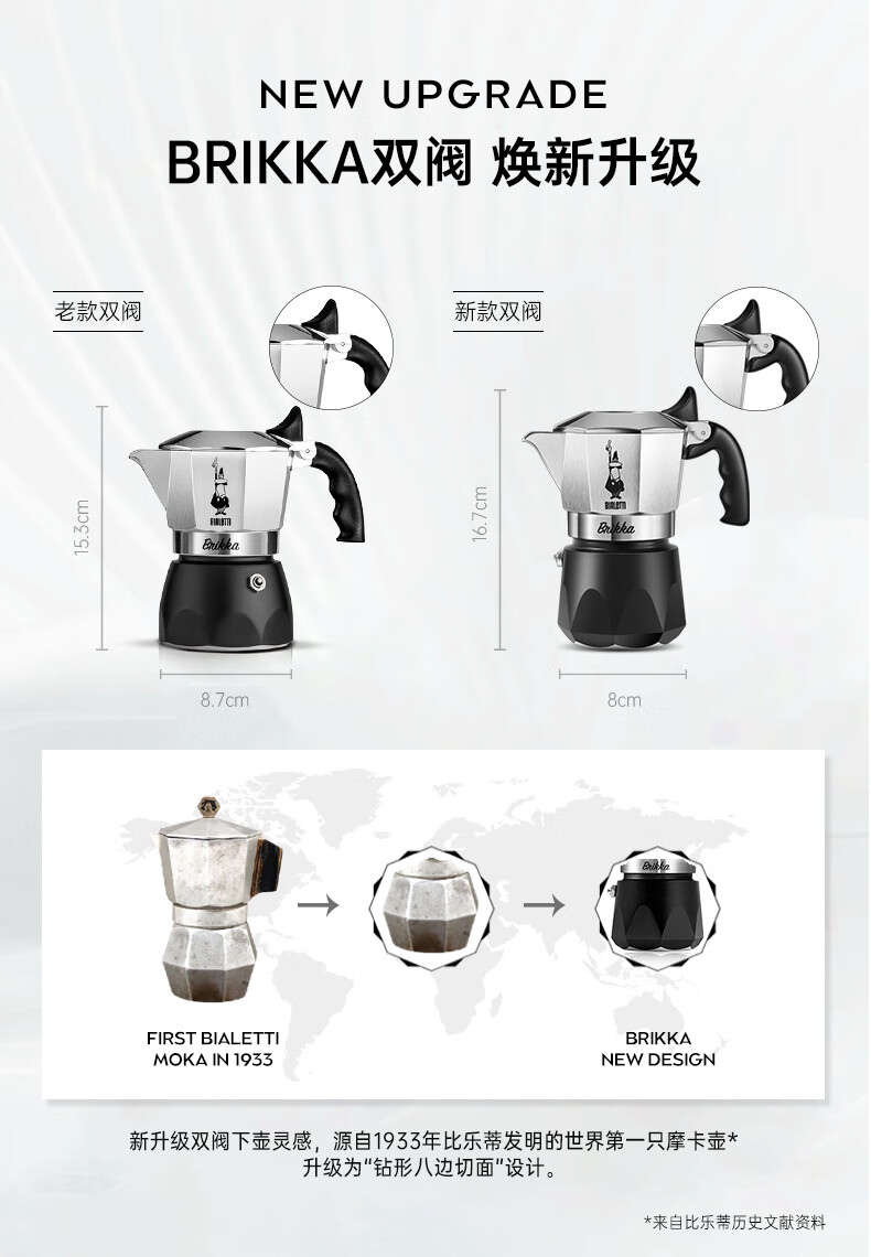 Bialetti official genuine Moka pot double valve high pressure hand brewed coffee pot espresso manual coffee machine gift gift upgraded double valve 2 cups 100ml