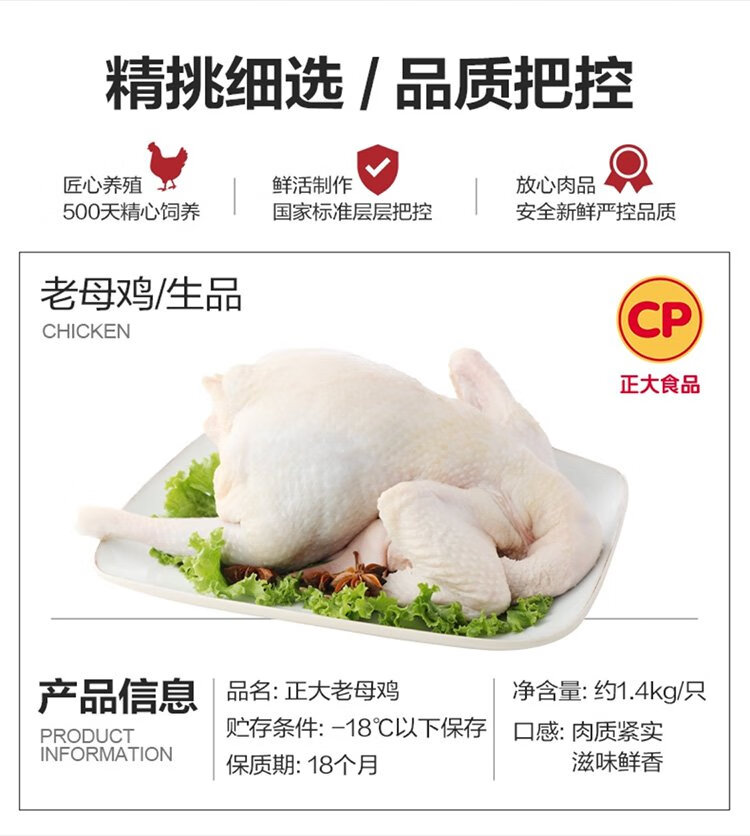 CP Zhengda Food Old Hen 2.8 Jin Jin is equal to 0.5 kg, frozen, raised for 500 days, old hen soup for confinement period