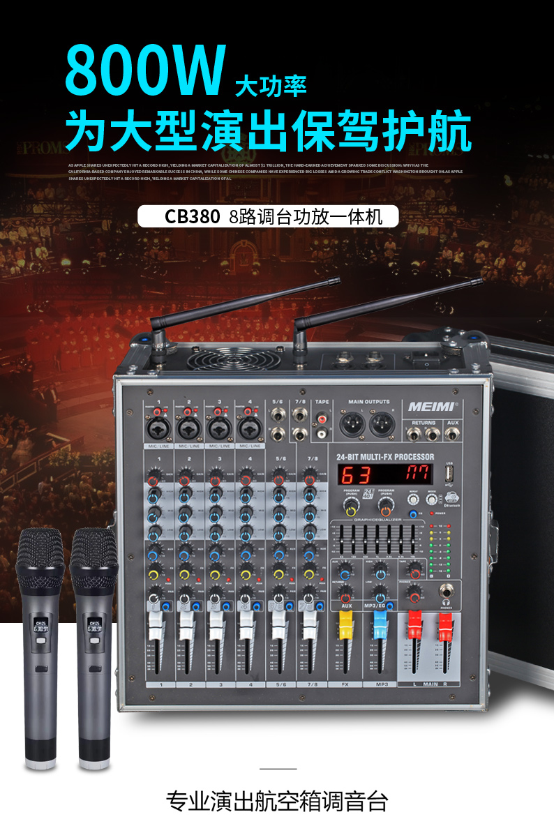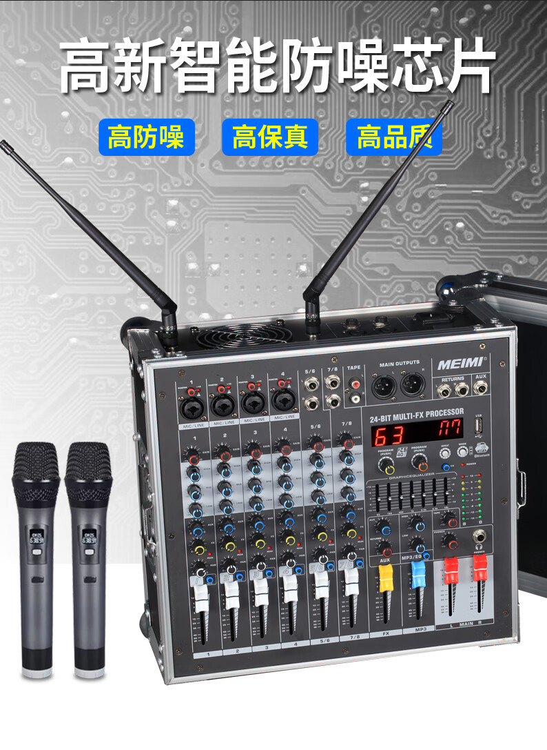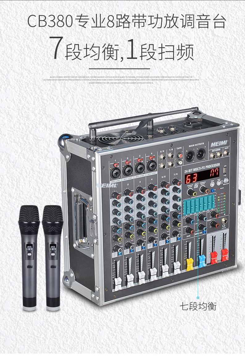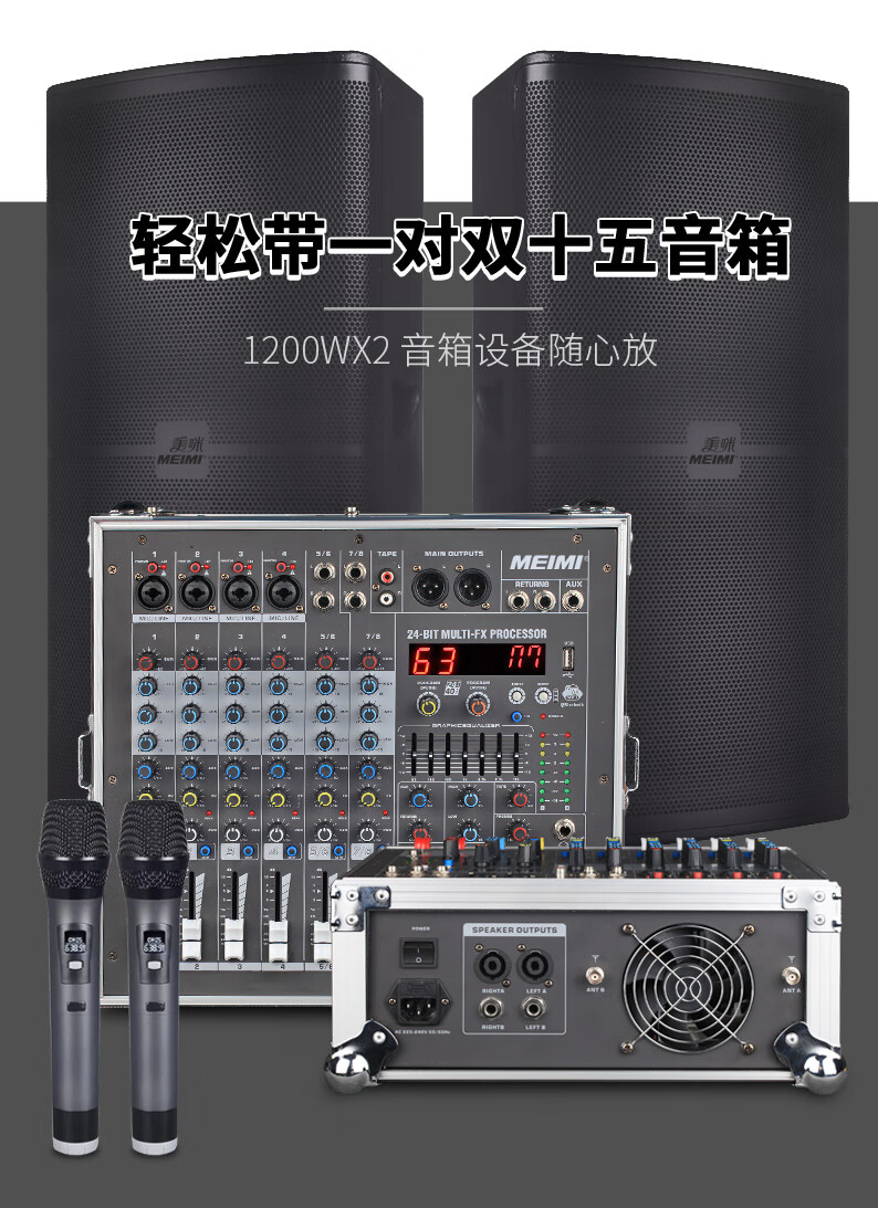 MEIMI audio set mixer with amplifier all-in-one single and double 15-inch performance high-power KTV wedding conference outdoor full-range floor-standing audio with amplifier mixer + 2 microphones