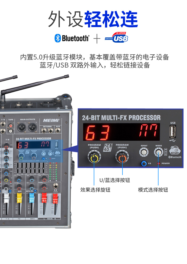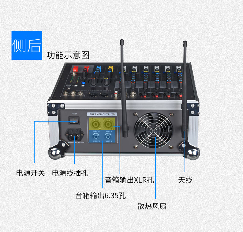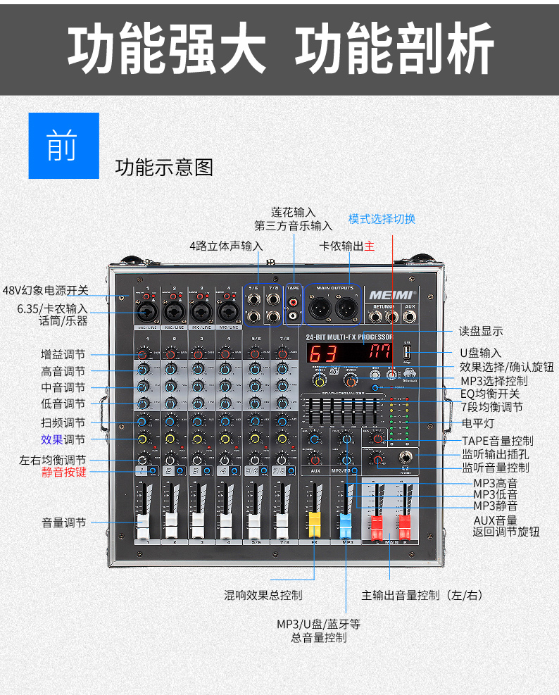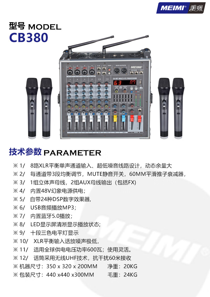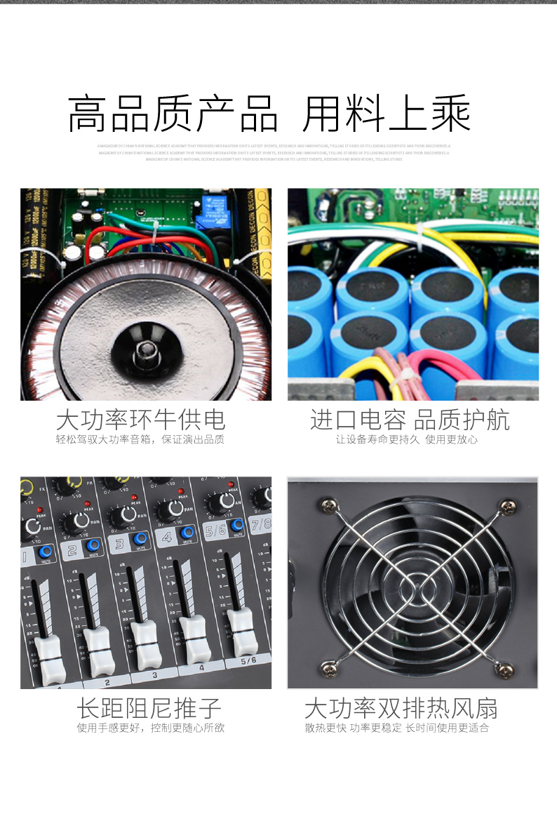 MEIMI audio set mixer with amplifier all-in-one single and double 15-inch performance high-power KTV wedding conference outdoor full-range floor-standing audio with amplifier mixer + 2 microphones
