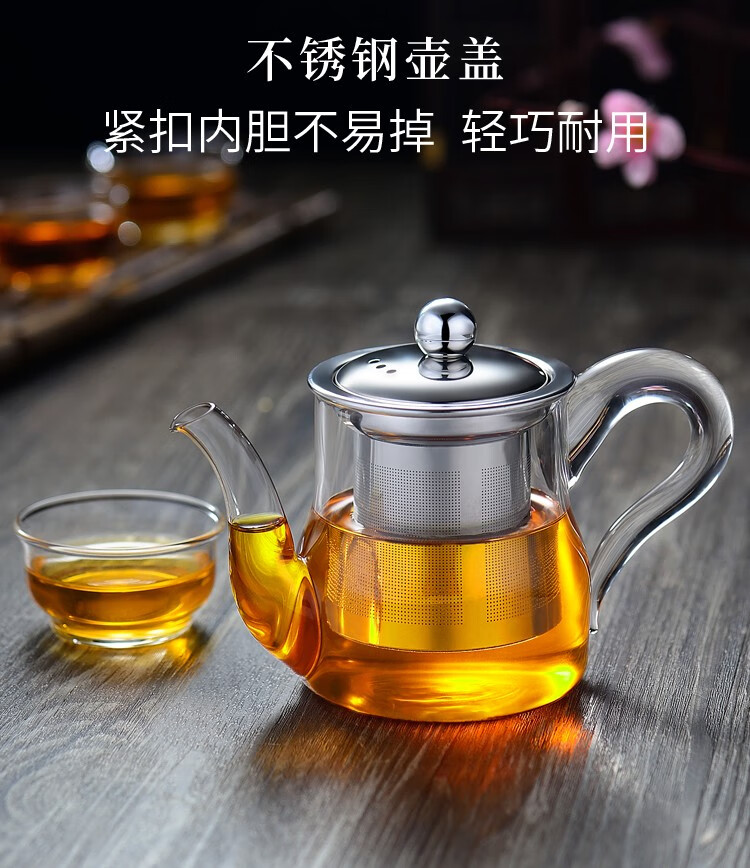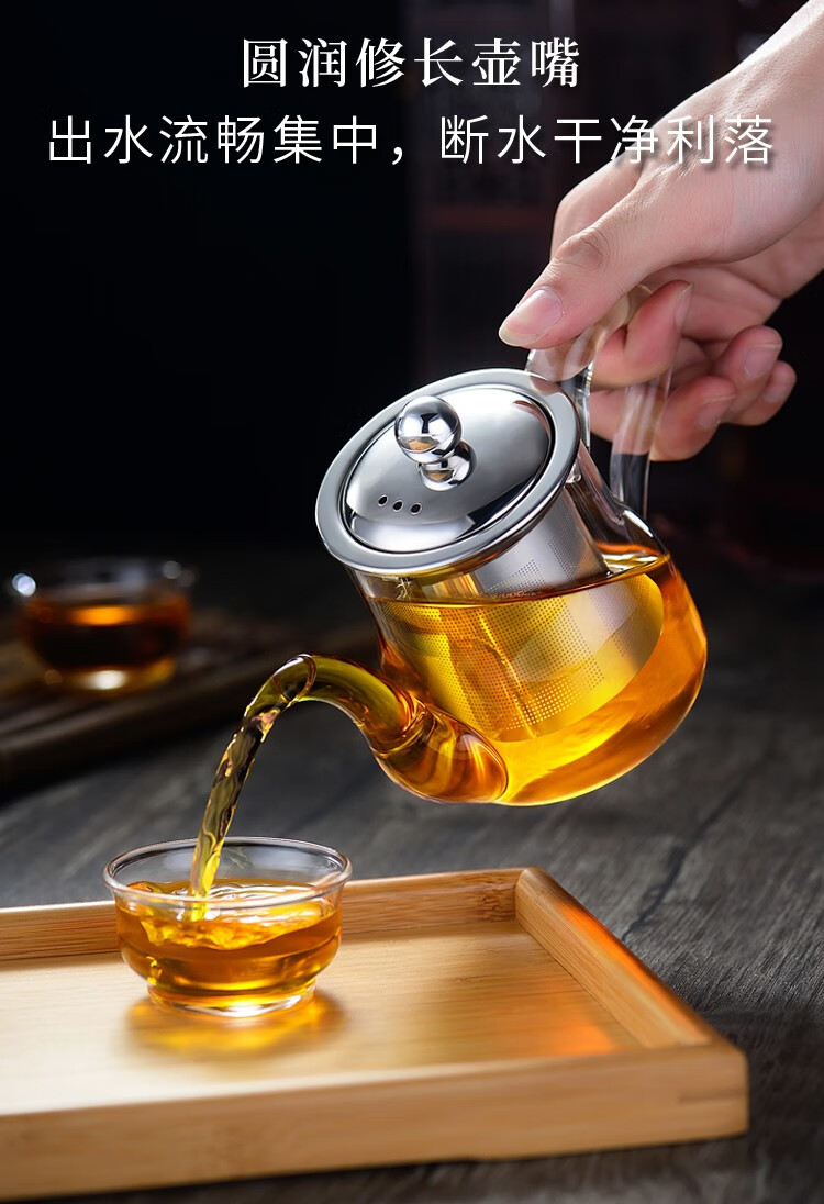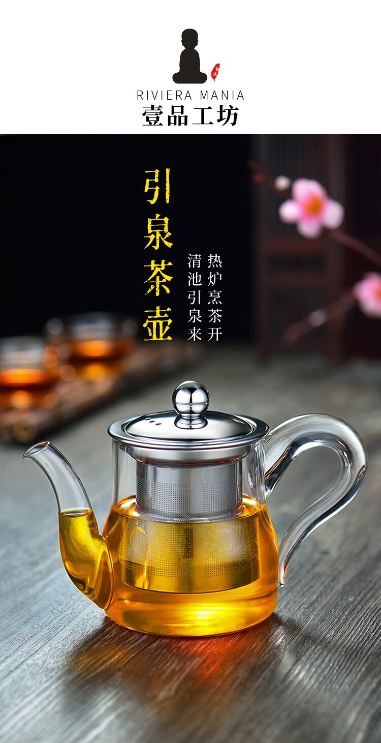 Yipin Workshop High Temperature Resistant Thickened Glass Teapot Filter Heat Resistant Teapot Flower Teapot Household Tea Set Tea Cup Set Yinquan Kettle 380ml