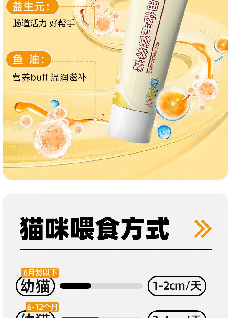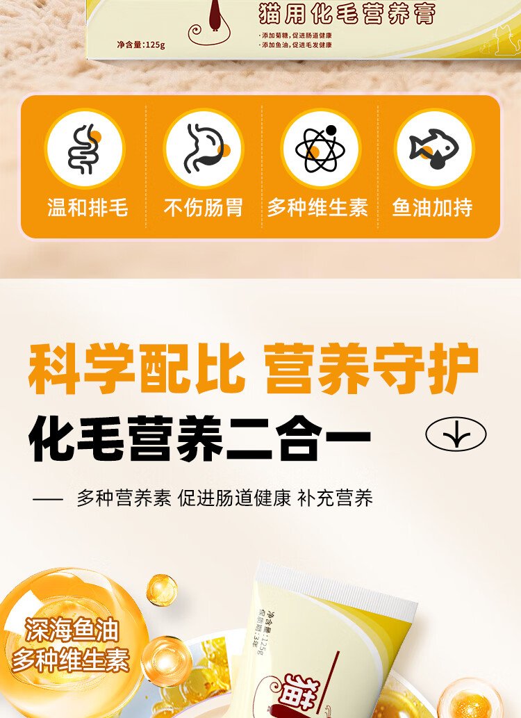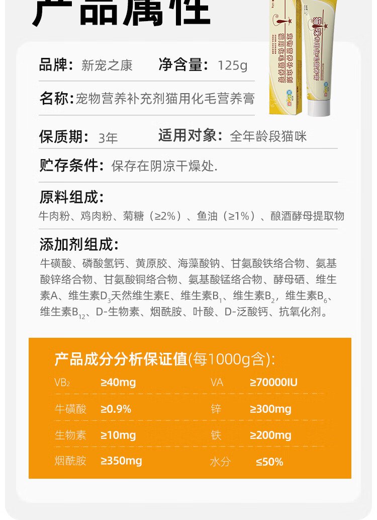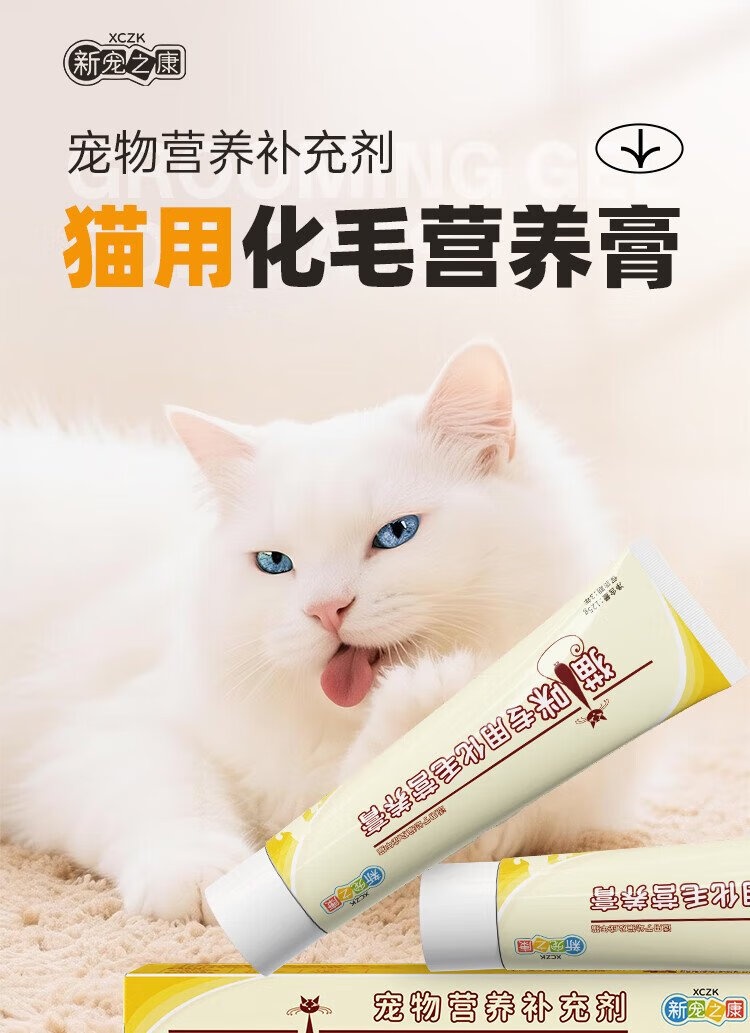 XinChongZhiKang Cat Hair Cream 125g Pet Hair Ball for Young and Adult Cats to Expel Hair and Regulate Gastrointestinal Nutritional Supplement
