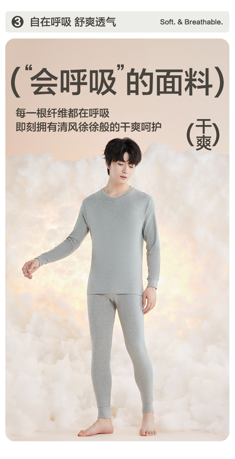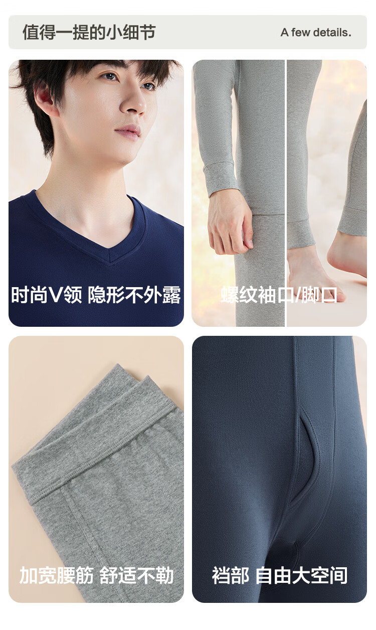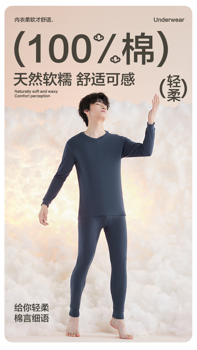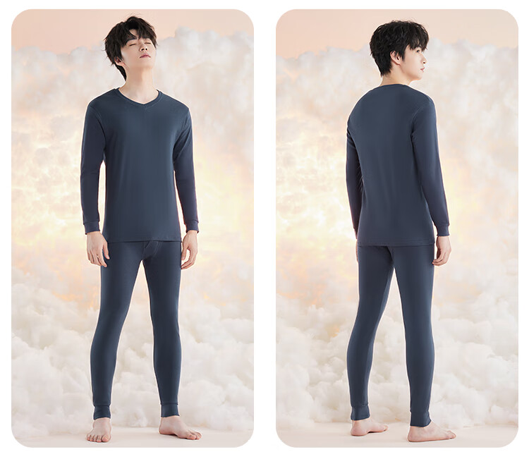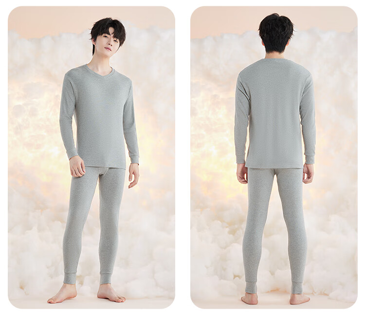 红豆内衣男士秋衣秋裤纯棉V领薄款棉毛衫打底套装秋上新 深灰 175/100