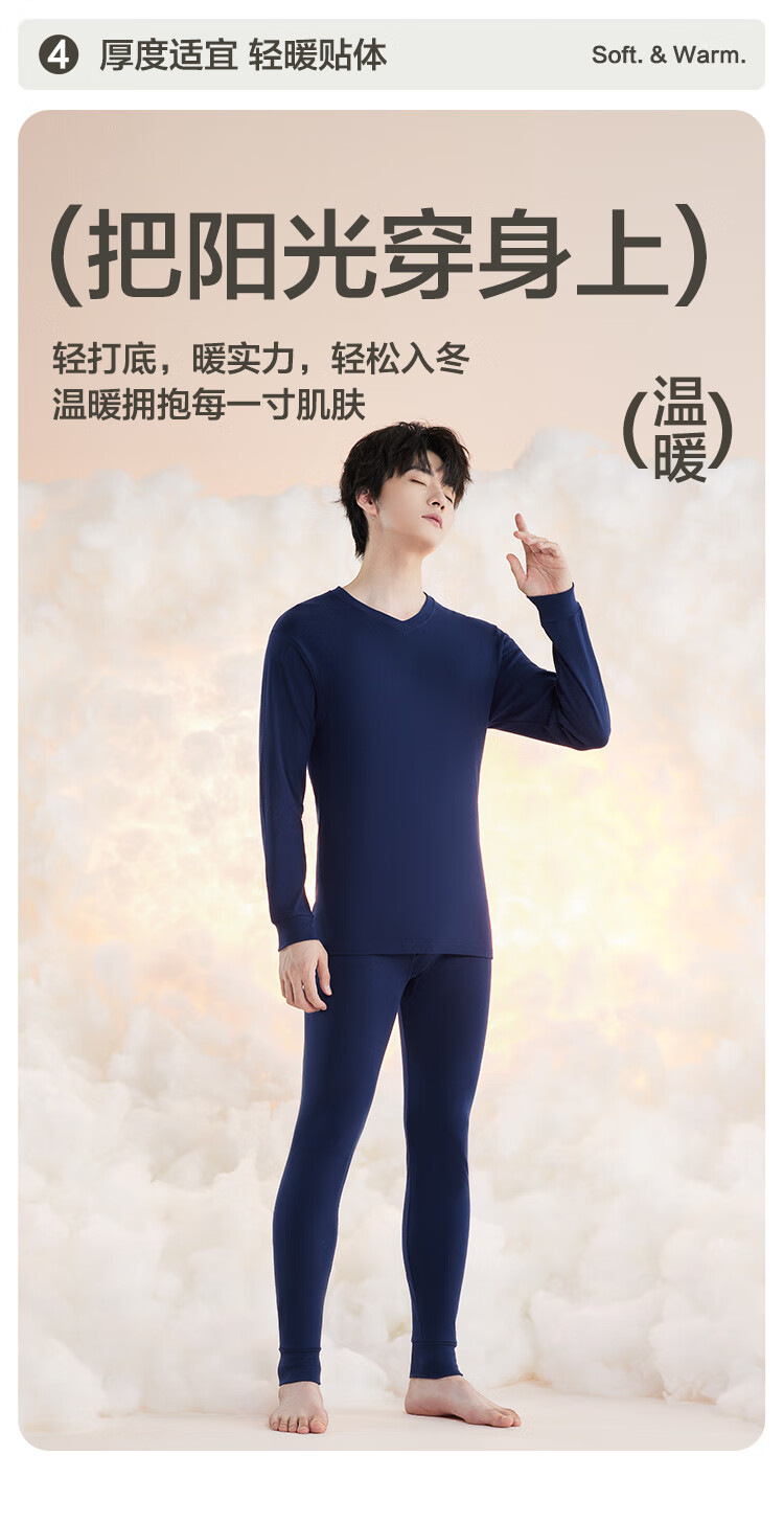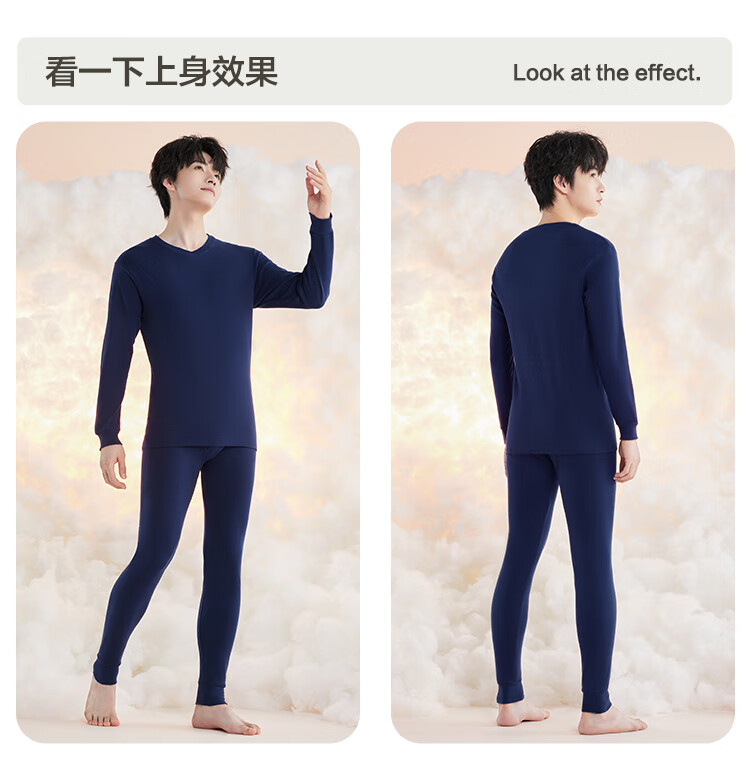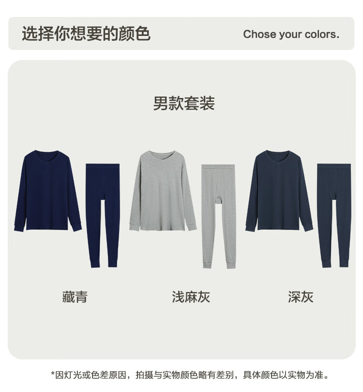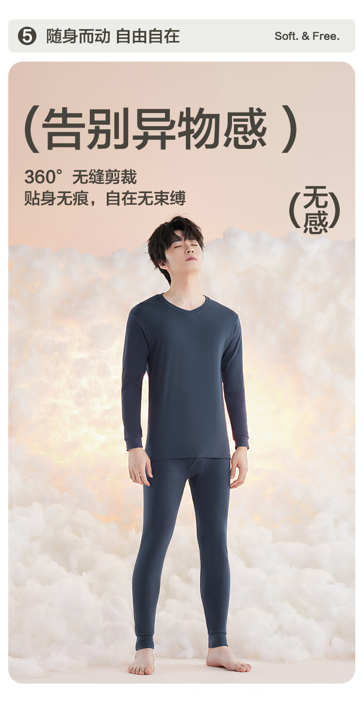 红豆内衣男士秋衣秋裤纯棉V领薄款棉毛衫打底套装秋上新 深灰 175/100
