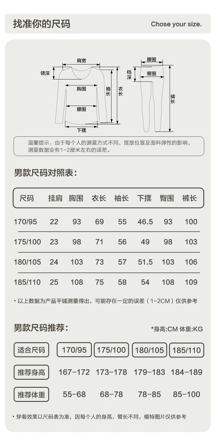 China (cm) 160-165/84-86 165-170 / 88-90 167-172 / 92-96 168-173 / 98-102 170-176 / 106-110