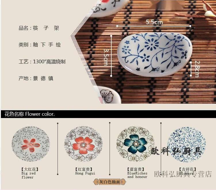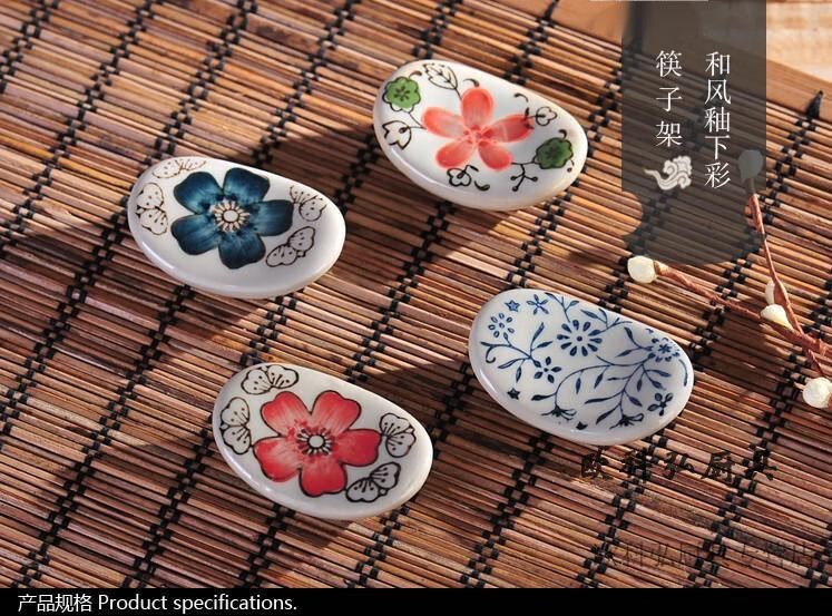 Oukehong Japanese-style underglaze color tableware ceramic chopstick holder chopstick holder chopstick holder pillow Chinese tableware creative chopstick holder 4 auspicious flowers
