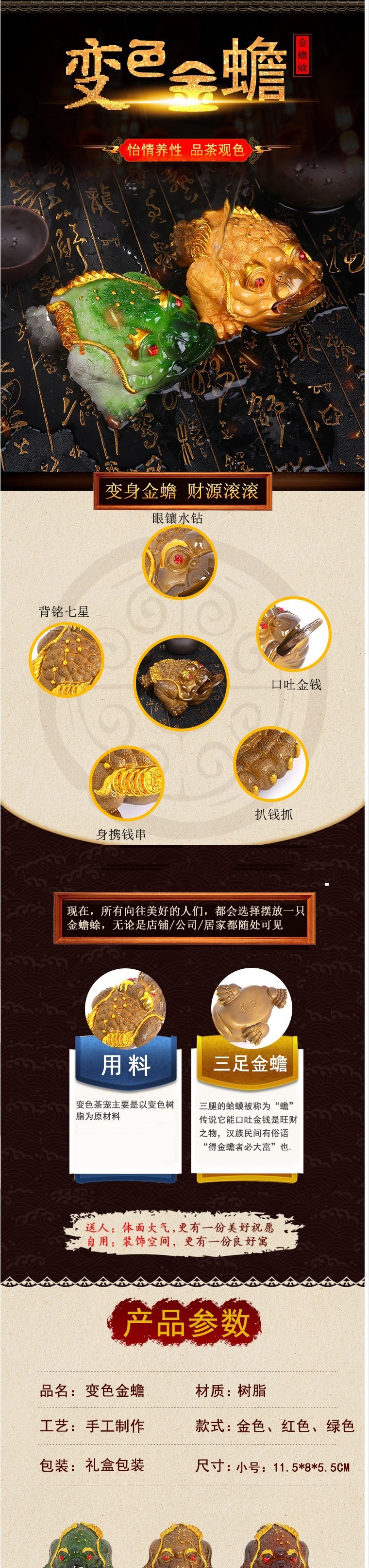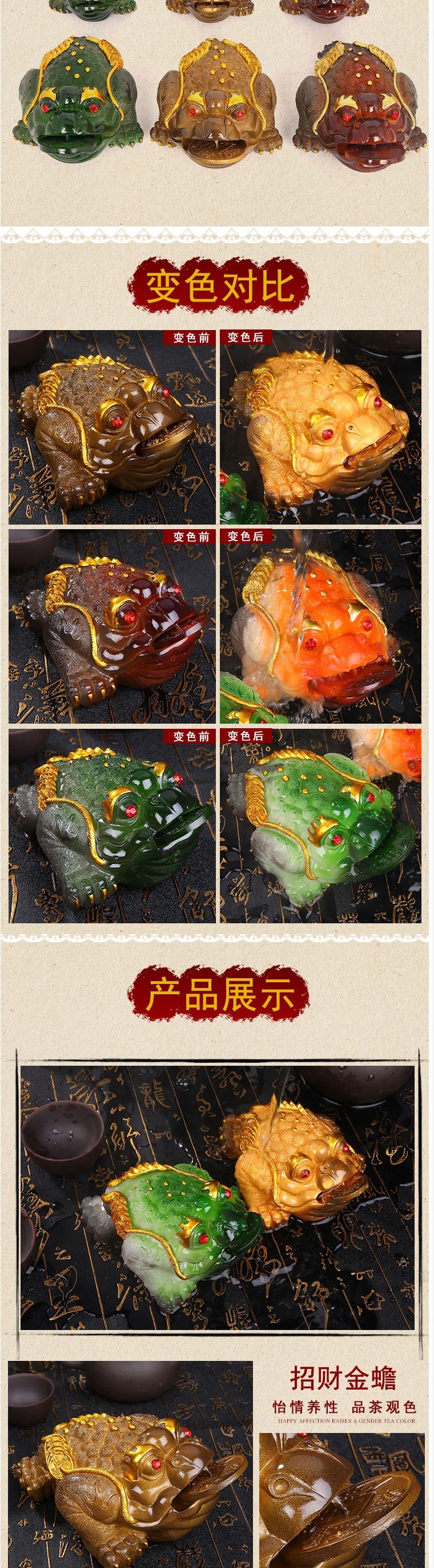 Tea pet ornaments change color to attract wealth, golden toad pet creative coffee table ornaments, tea table, tea tray, tea ceremony, tea art, temperature-sensing tea set accessories, accessories, three-legged tea play, handmade tea worms, golden golden toad