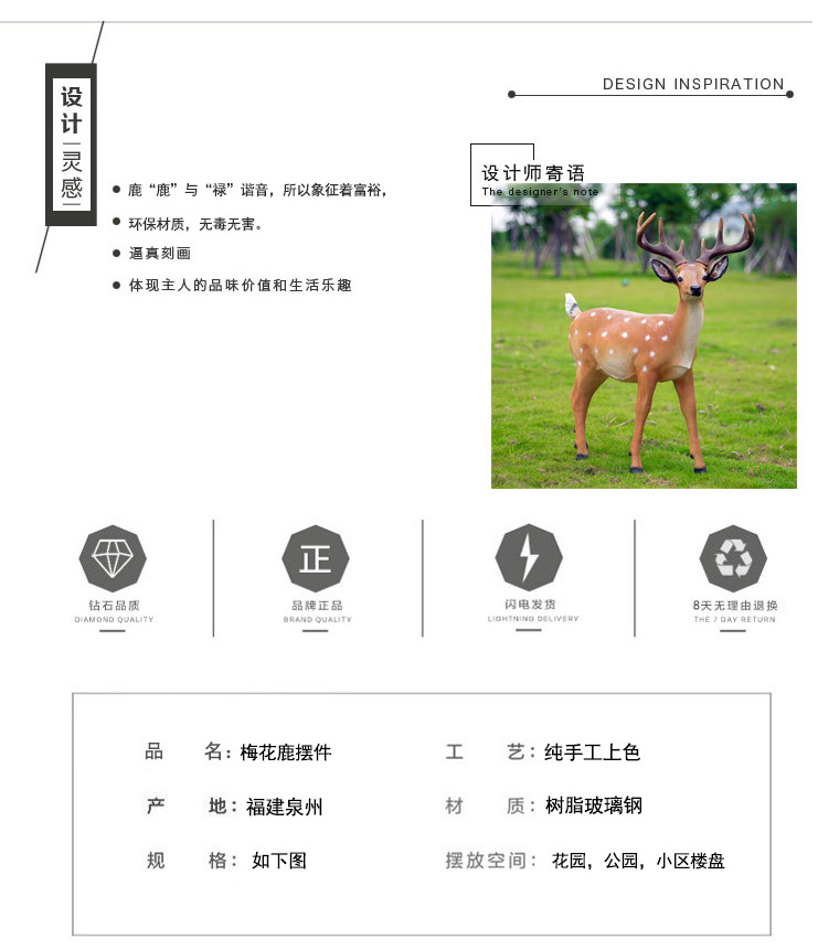 Hongri Guanghui courtyard outdoor garden forest animal decorations resin fiberglass simulated sika deer sculpture ornaments a pair of small lying deer