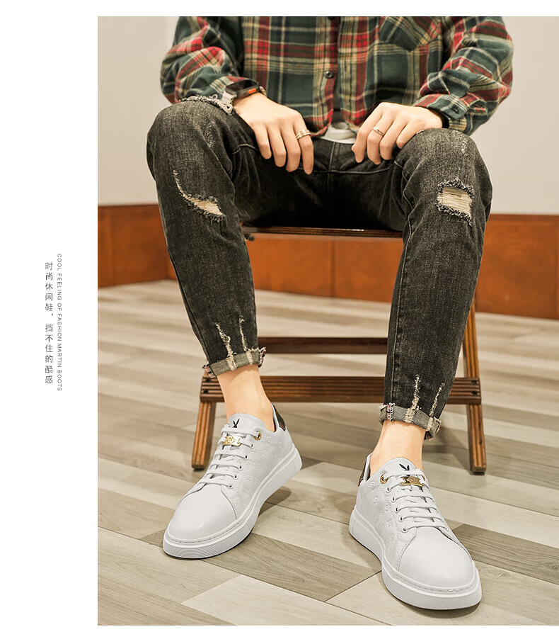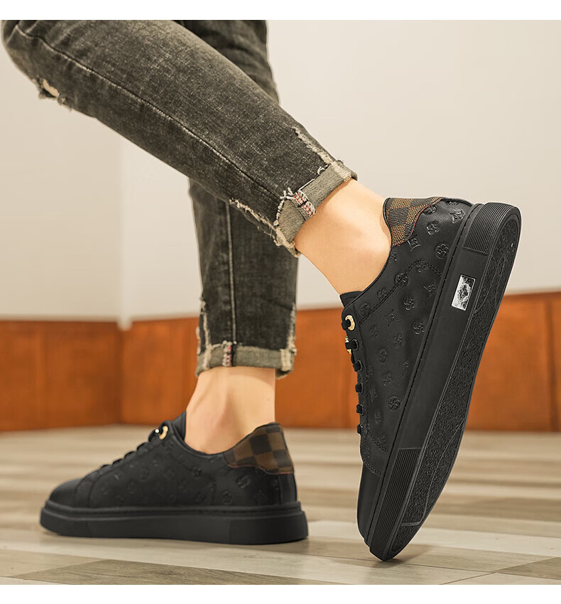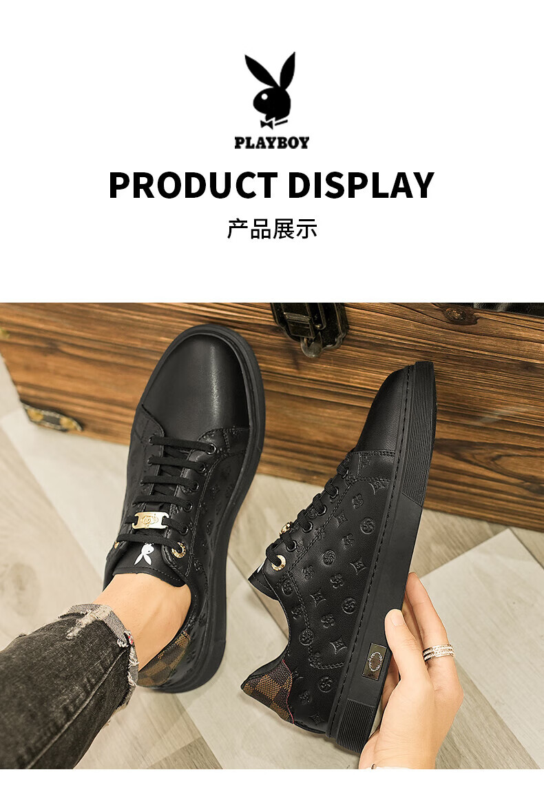 Playboy men's shoes 2025 autumn and winter new casual shoes men's high-end sneakers plus velvet business British leather shoes for men black 41