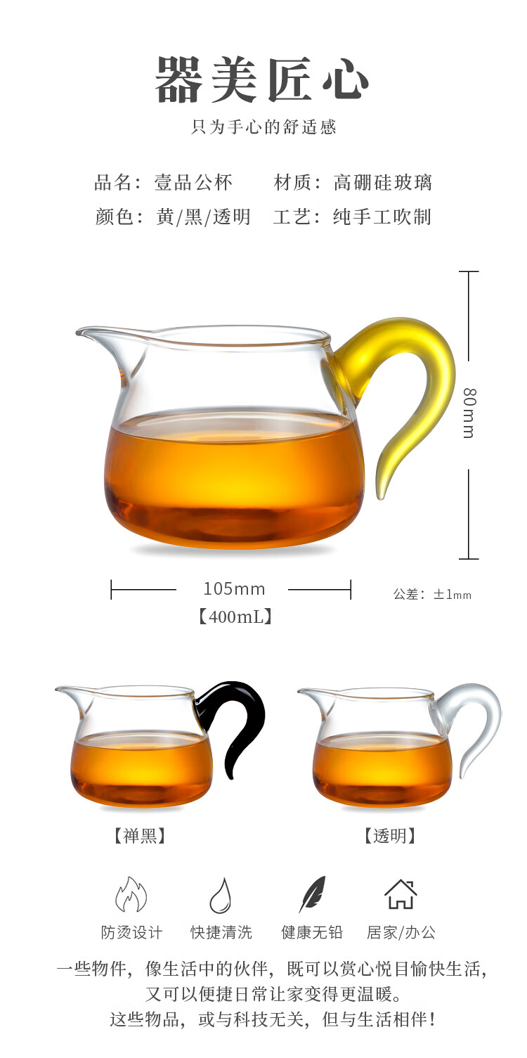 Yipin Workshop Taiwan fair cup high borosilicate glass male cup pure handmade thickened large tea divider tea sea tea ceremony tea set accessories yellow handle 400ML