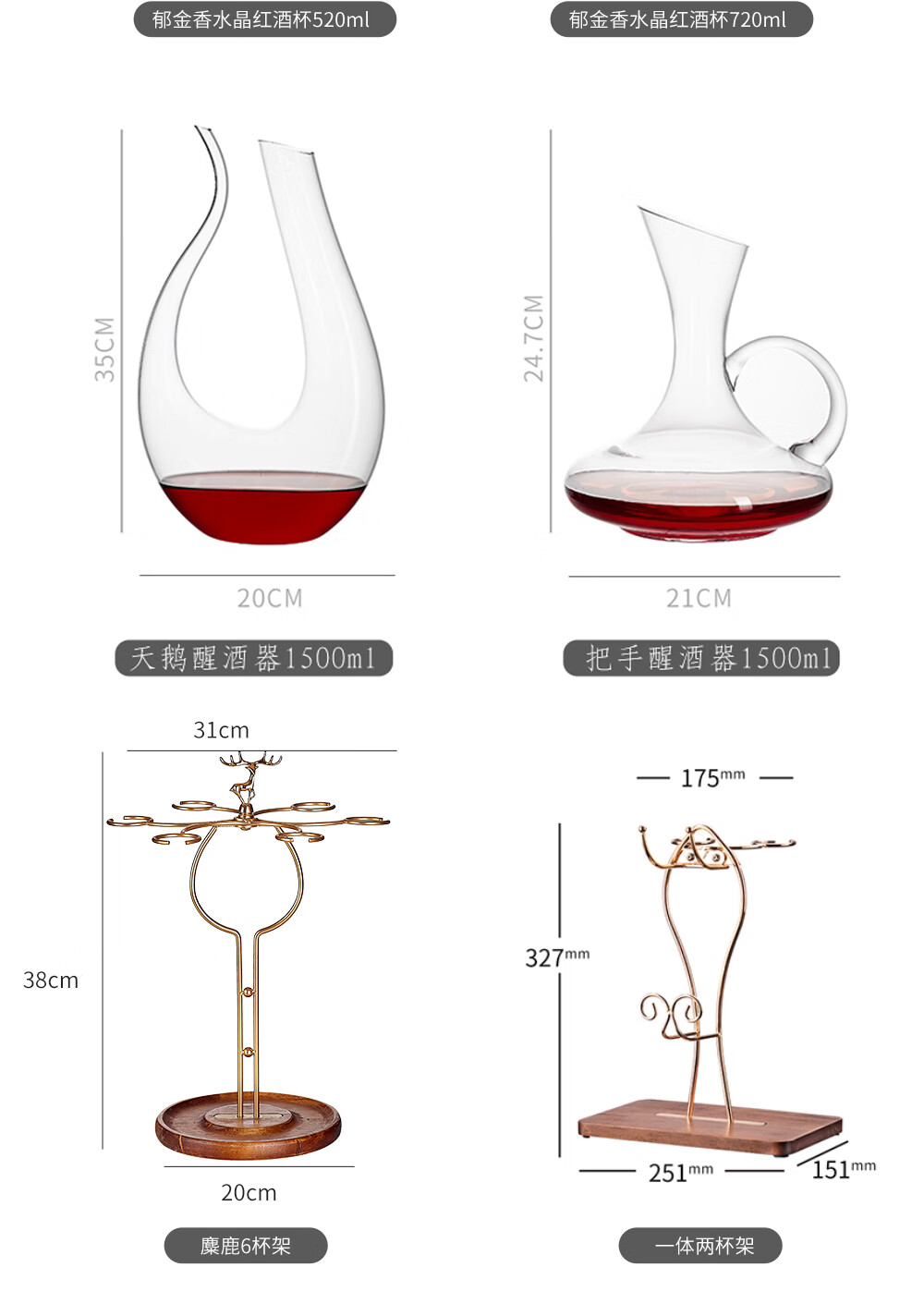 Green Apple (QINGPINGGUO) European crystal red wine glass set of 6 household large wine glasses creative grape decanter glass goblets Phantom six pack 350ml