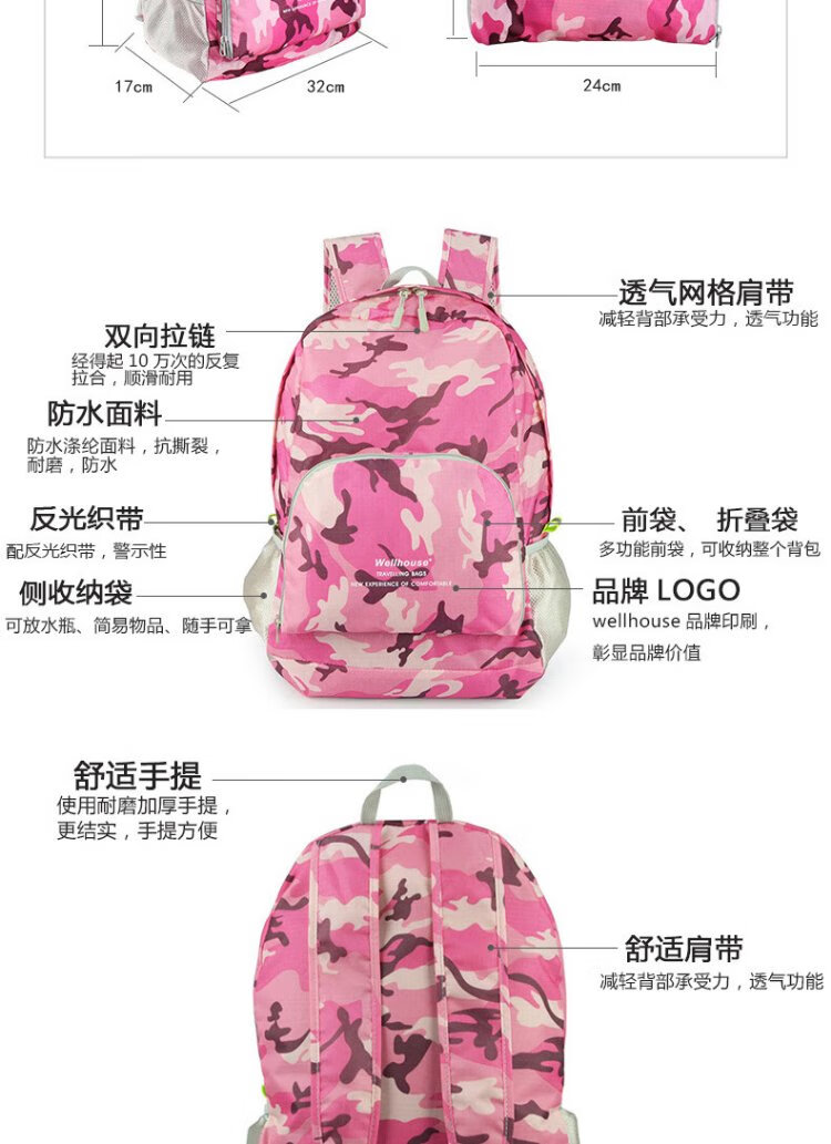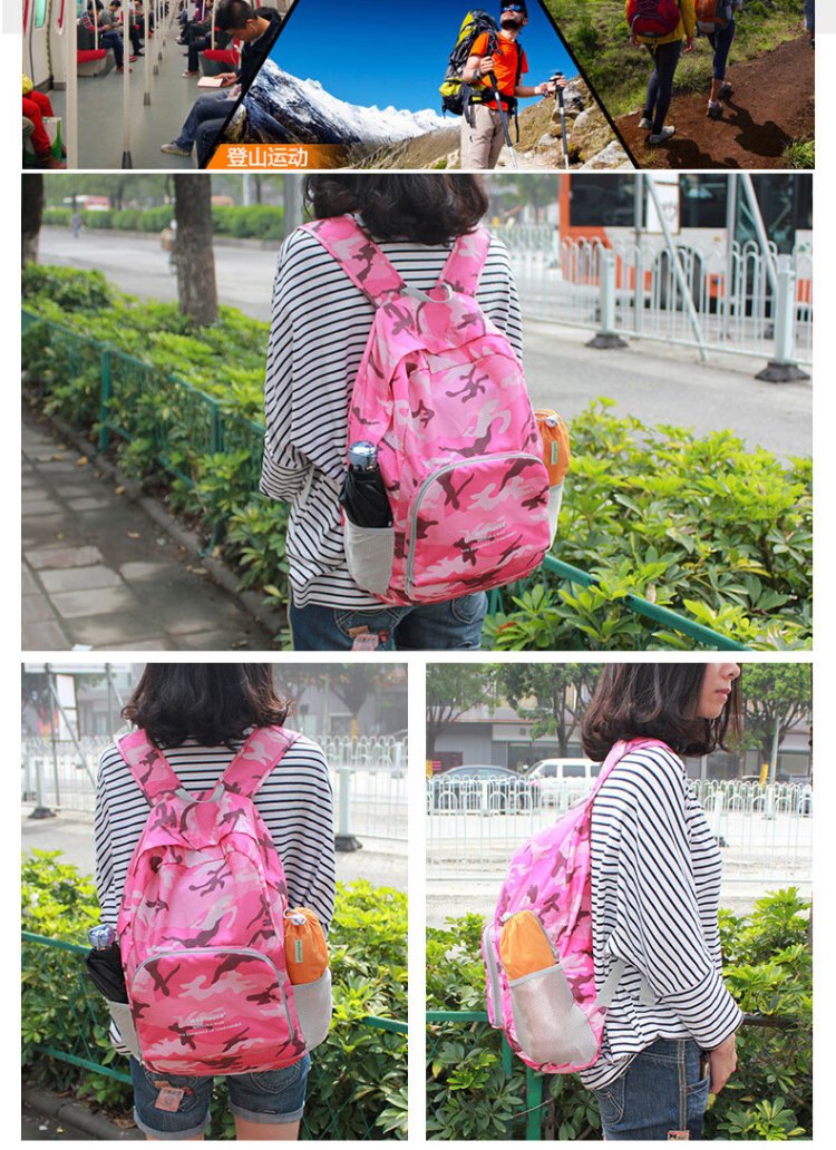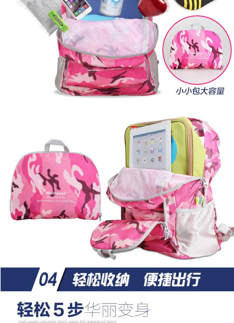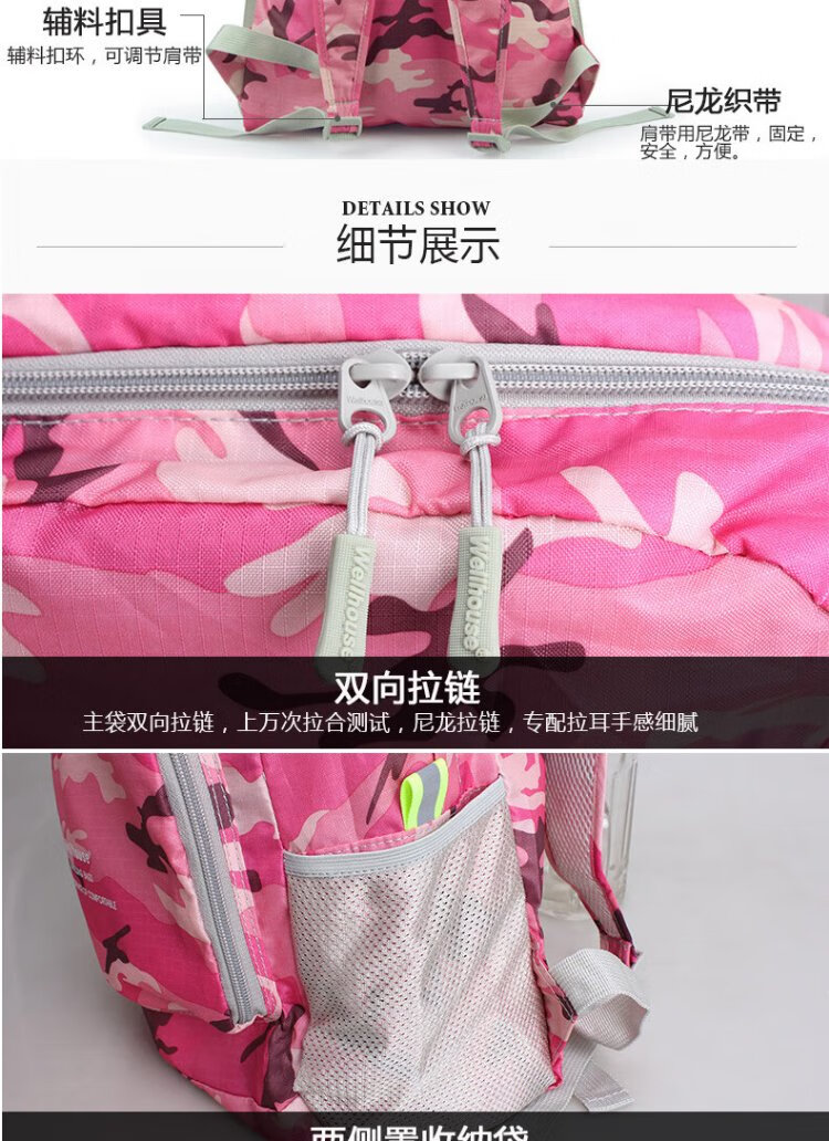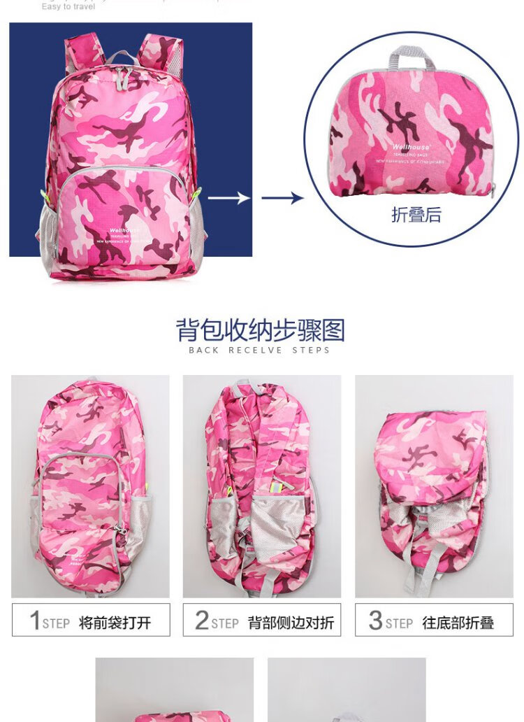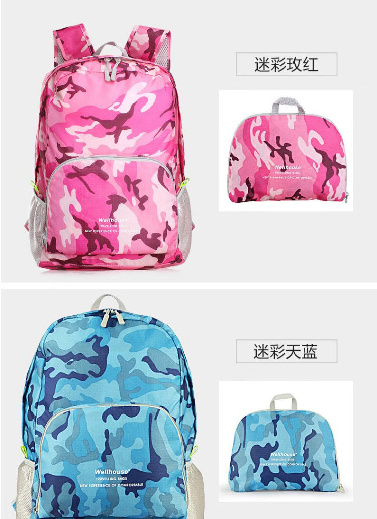 WELLHOUSE Backpack Folding Men's and Women's Backpack Outdoor Running Travel Mountaineering Large Capacity Waterproof Lightweight Bag Camouflage Rose Red