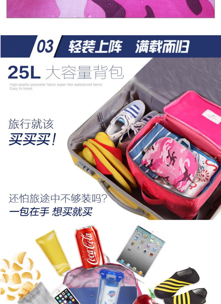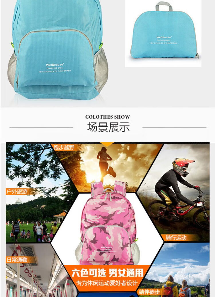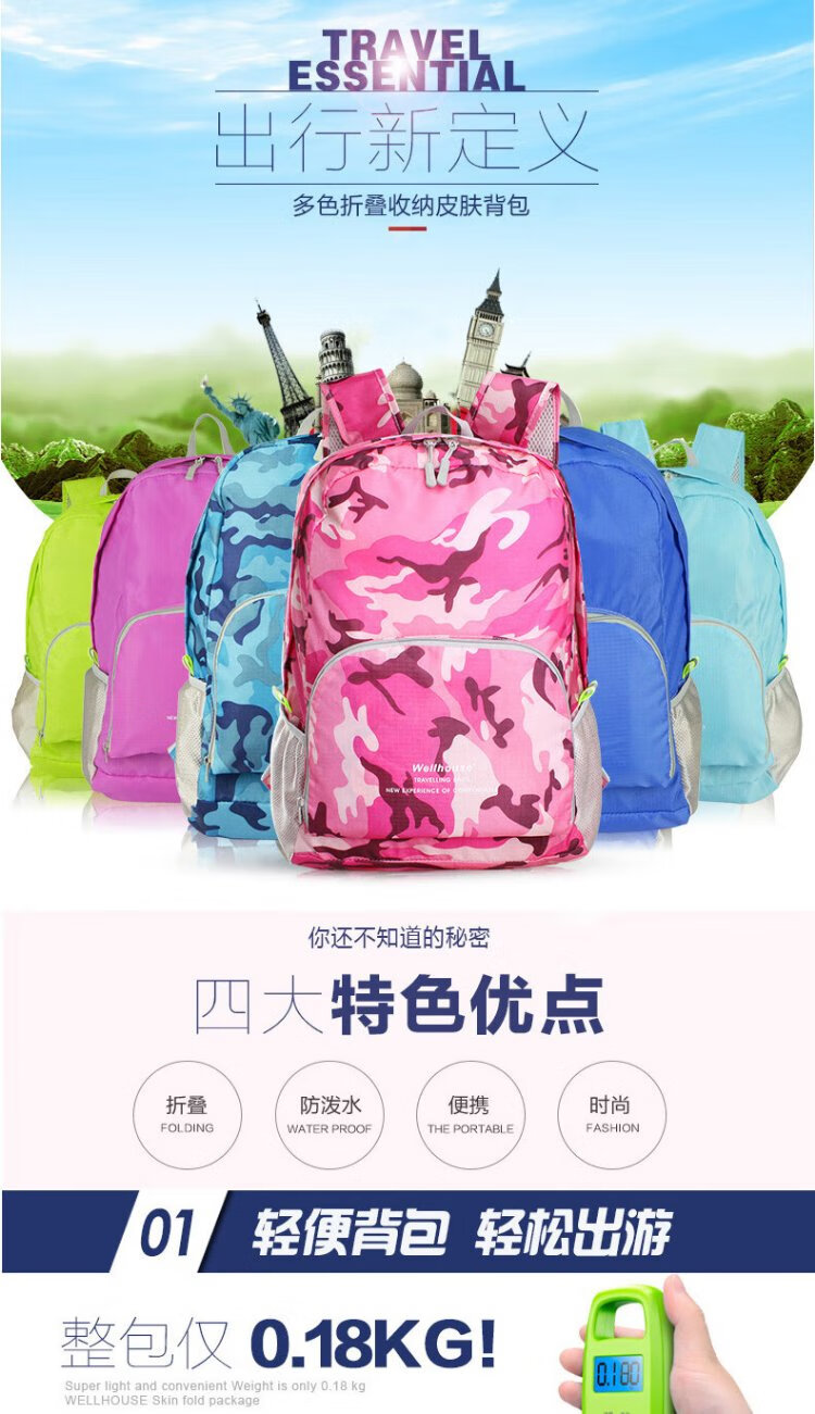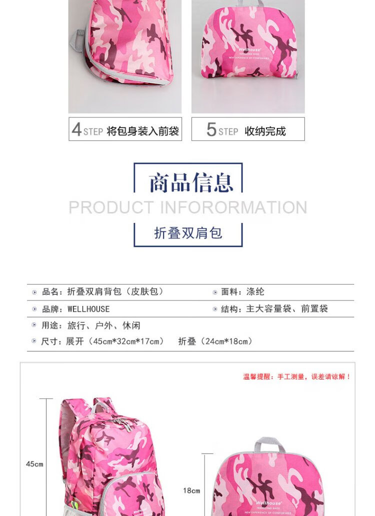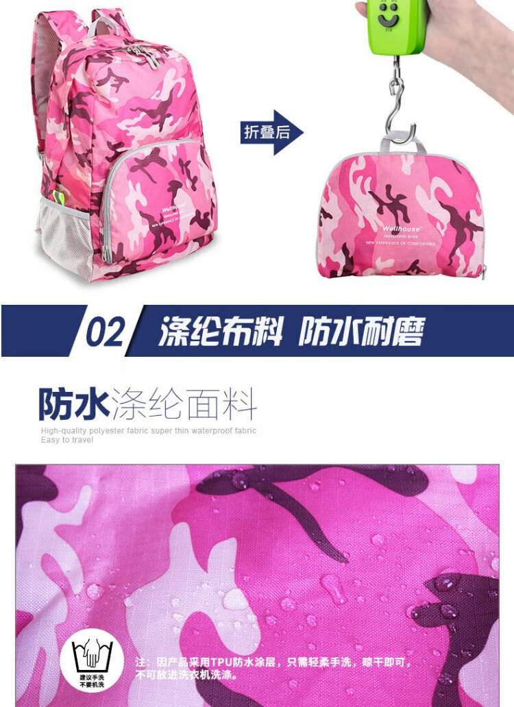 WELLHOUSE Backpack Folding Men's and Women's Backpack Outdoor Running Travel Mountaineering Large Capacity Waterproof Lightweight Bag Camouflage Rose Red