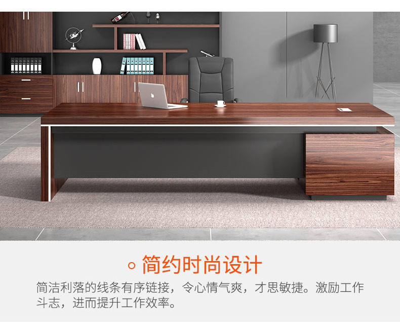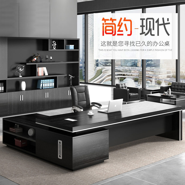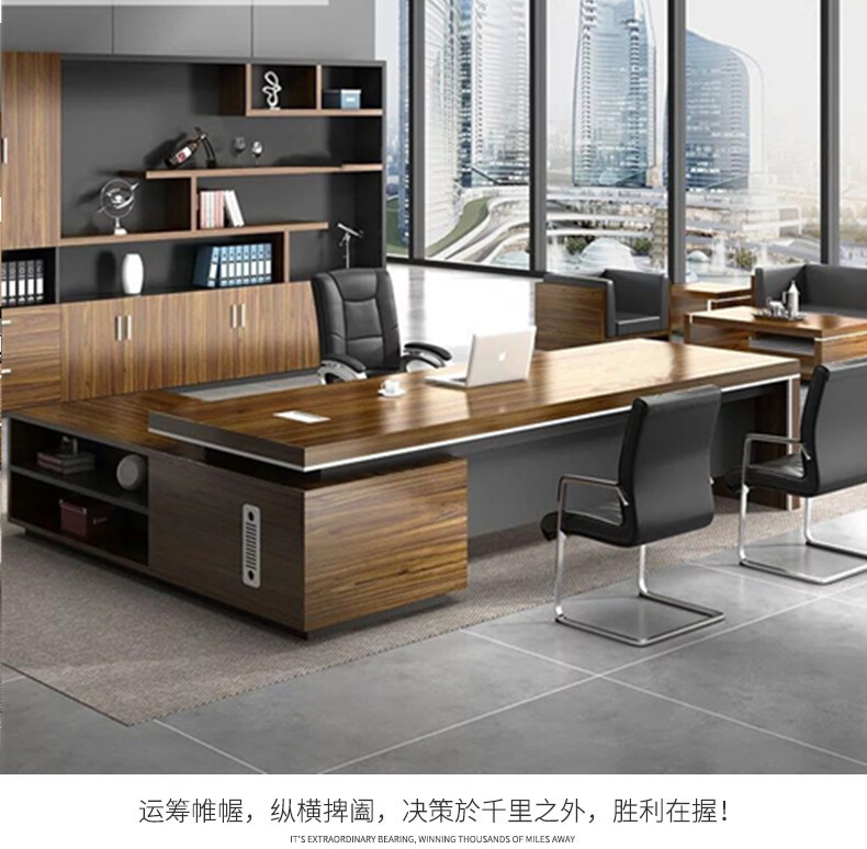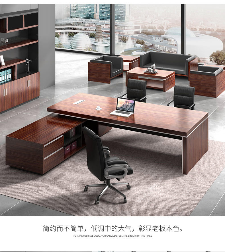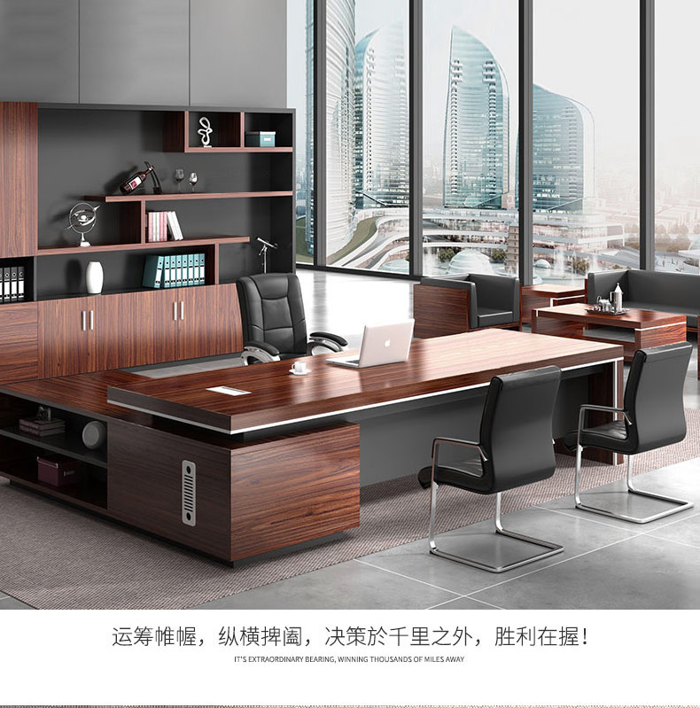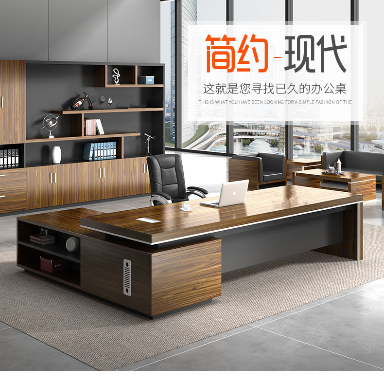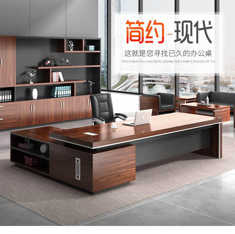 Grid wood boss desk office desk simple modern executive desk and chair combination bookcase president desk manager desk supervisor desk available in stock red walnut (left cabinet) total length 2.6*0.9 meters thickened boss desk