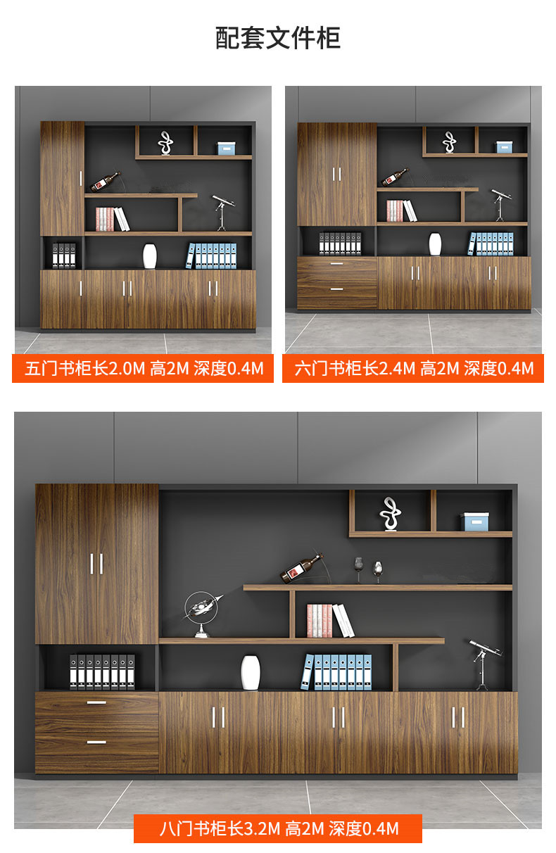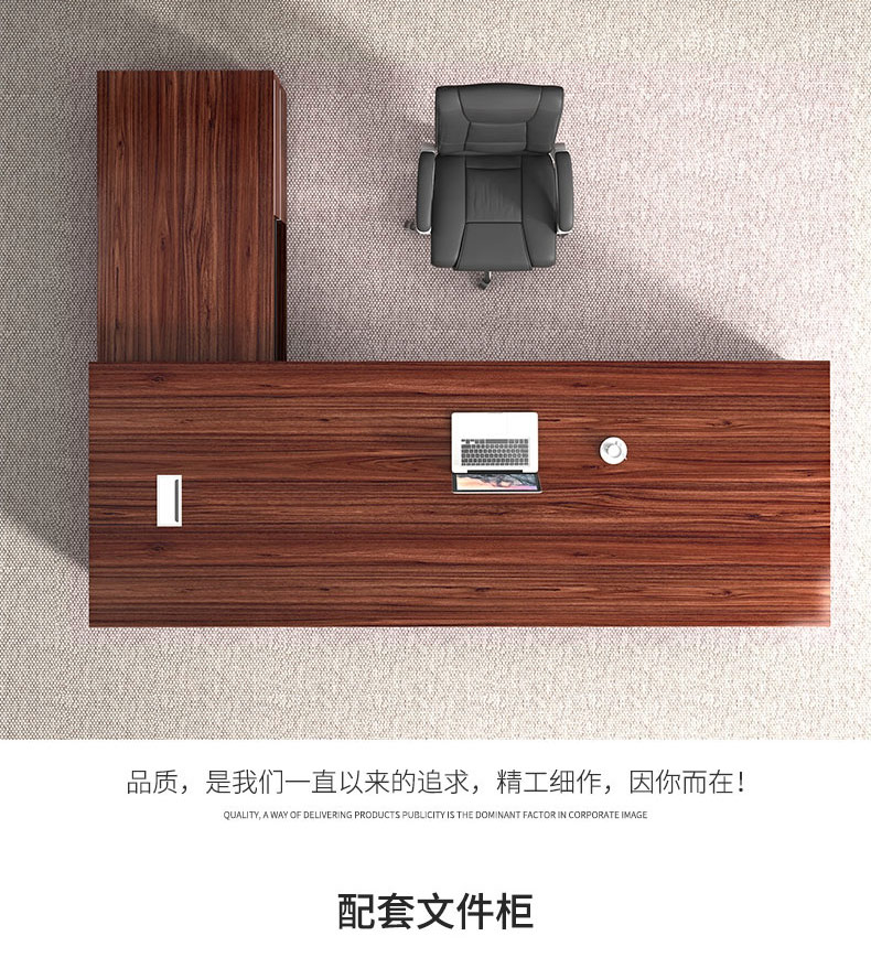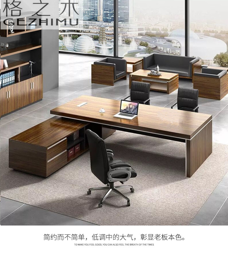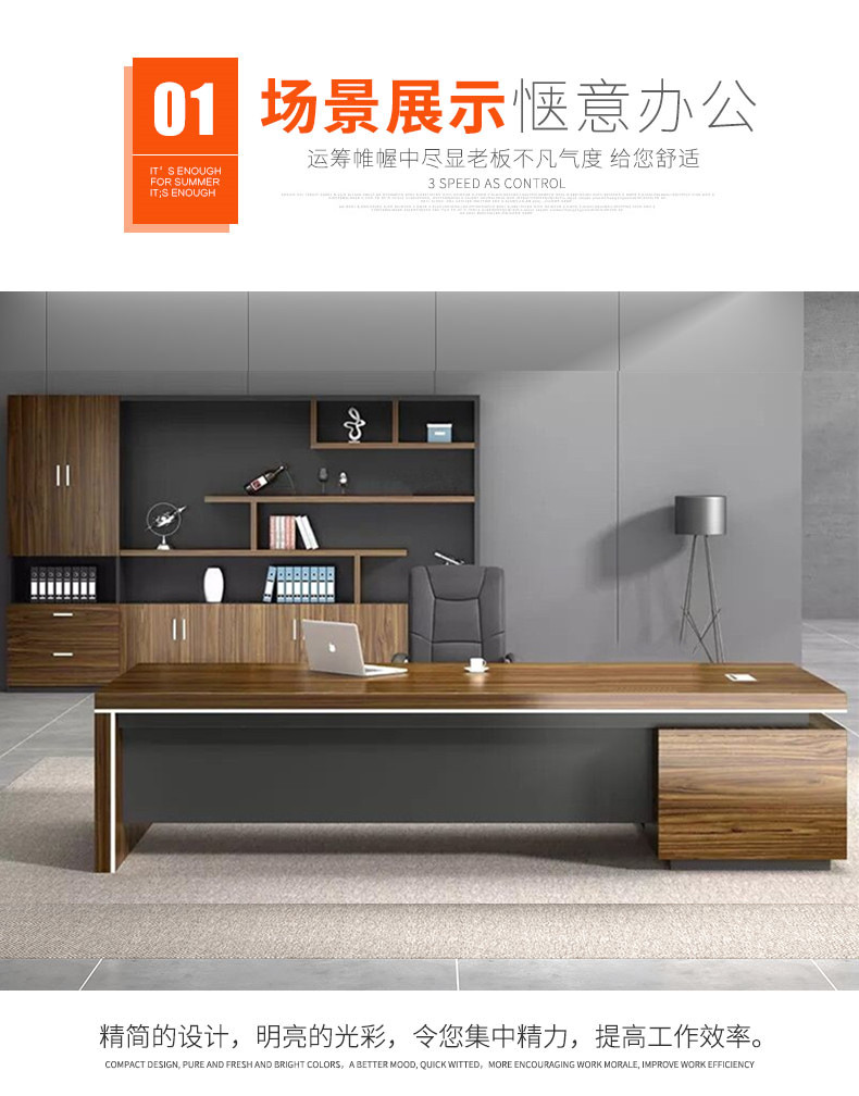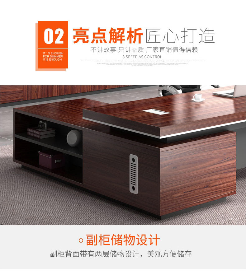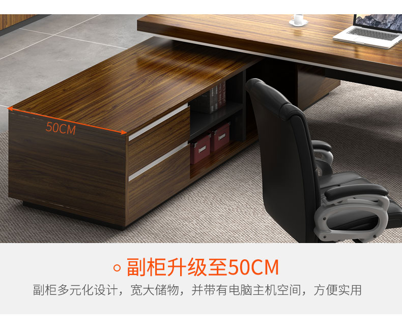 Grid wood boss desk office desk simple modern executive desk and chair combination bookcase president desk manager desk supervisor desk available in stock red walnut (left cabinet) total length 2.6*0.9 meters thickened boss desk