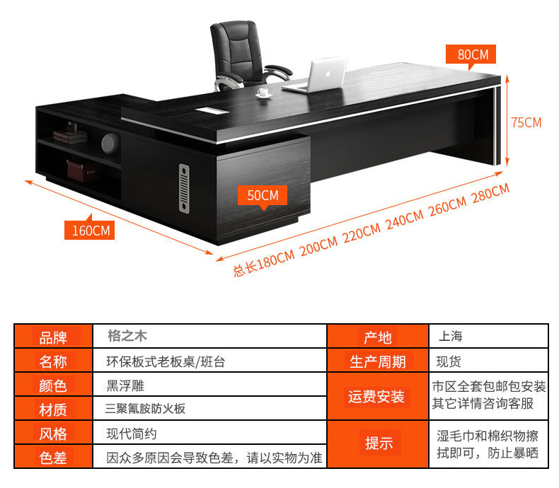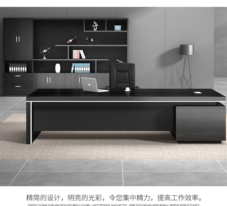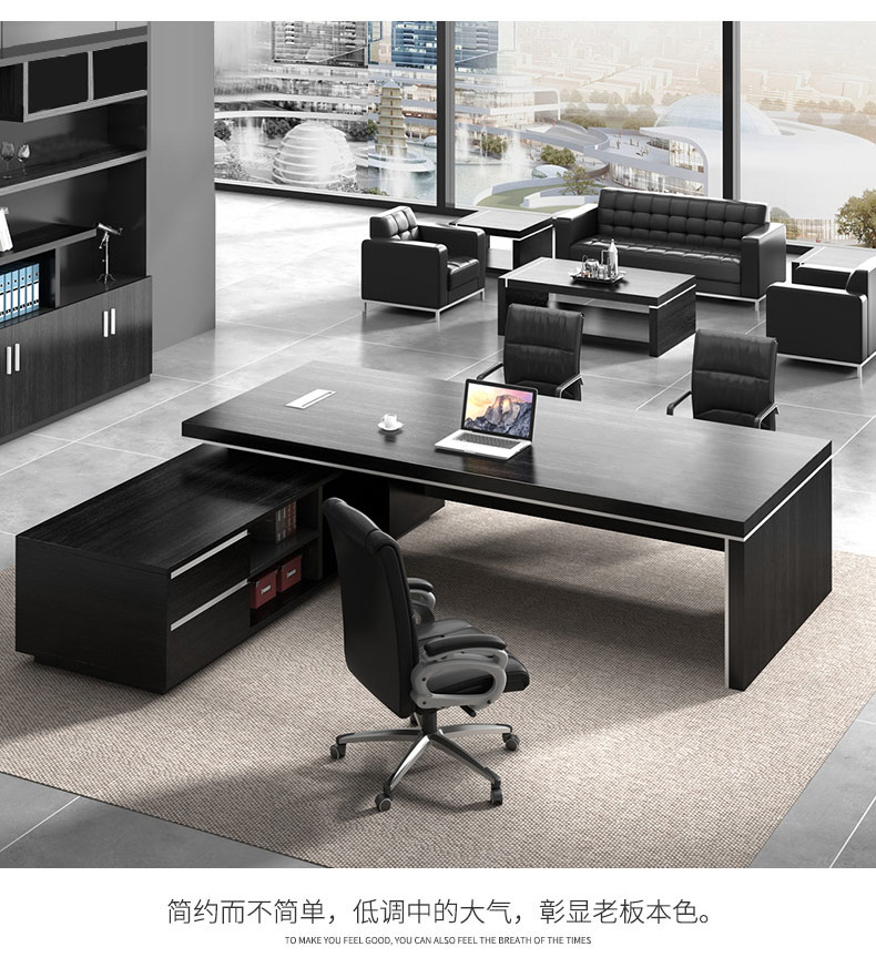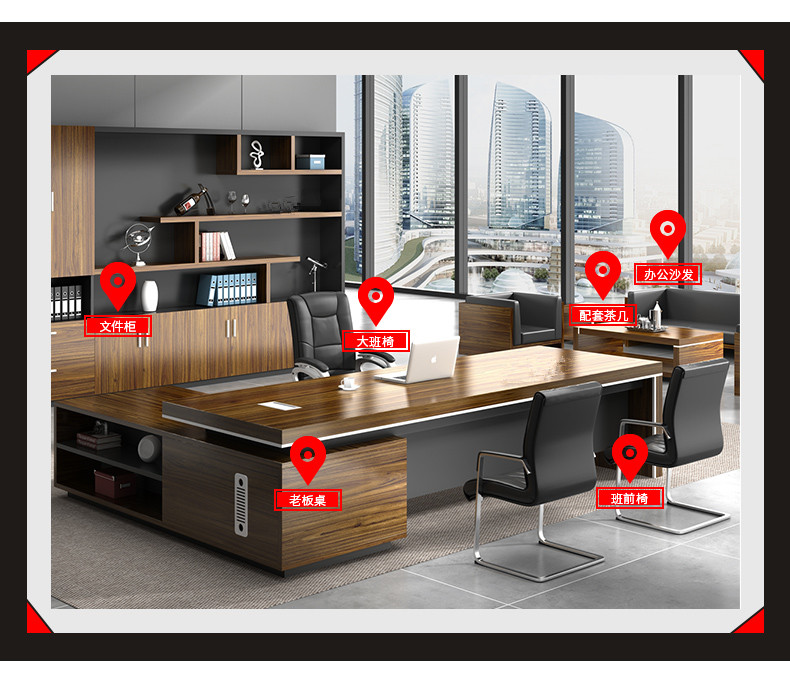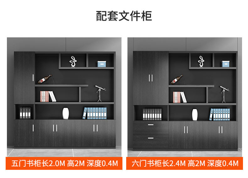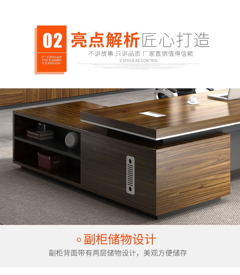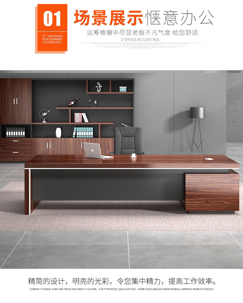 Grid wood boss desk office desk simple modern executive desk and chair combination bookcase president desk manager desk supervisor desk available in stock red walnut (left cabinet) total length 2.6*0.9 meters thickened boss desk