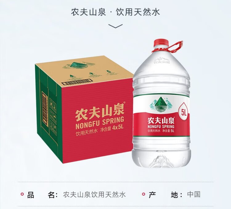 Nongfu Spring Drinking Water Natural Drinking Water 5L*4 Barrels Full Box Bottled Water Randomly Packed
