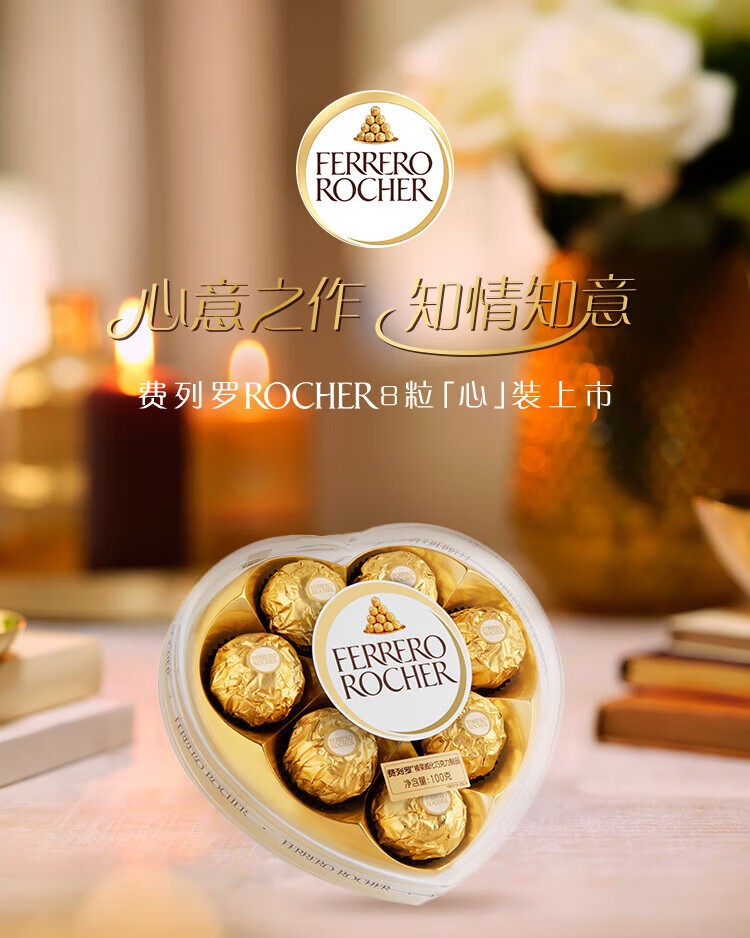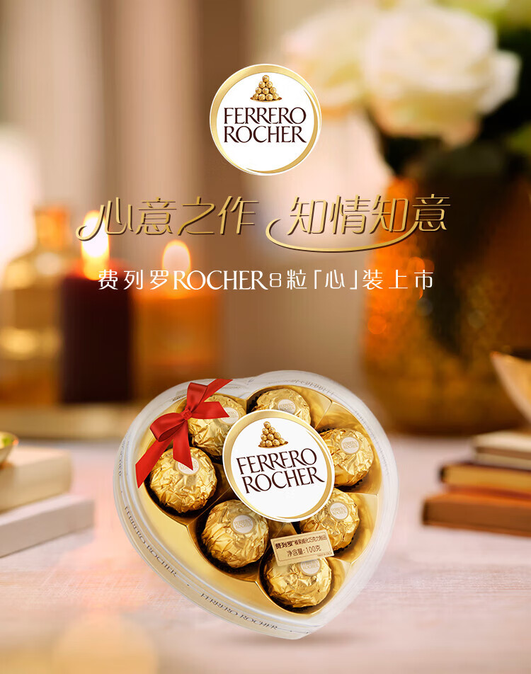 Ferrero chocolate 8 pieces 100g heart-shaped gift box snacks wedding candies souvenirs candies birthday gifts