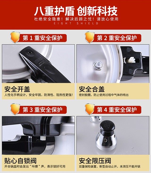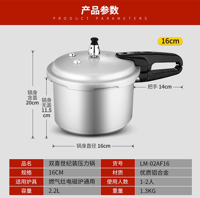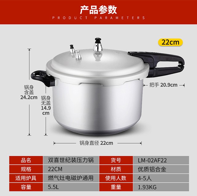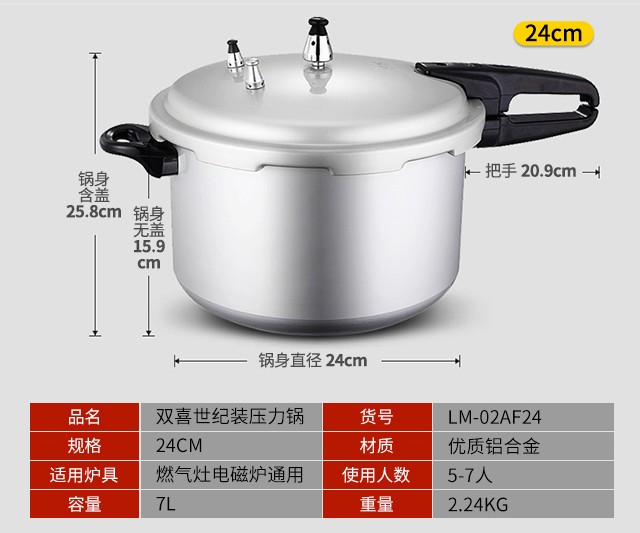 Double Happiness pressure cooker pressure cooker gas induction cooker mini small gas open flame universal high pressure explosion-proof household pot induction cooker universal 7.0L/3-4 people/24cm