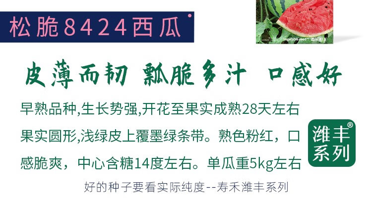 Shouhe crunchy type 8424 watermelon seeds, early good quality, early maturity, thin skin, summer and autumn seeds, watermelon seeds, 40 pieces of crunchy 8424 watermelon seeds