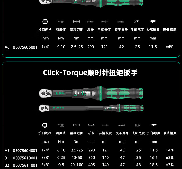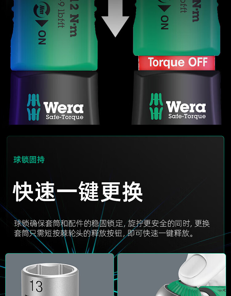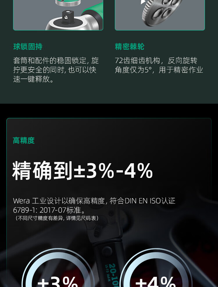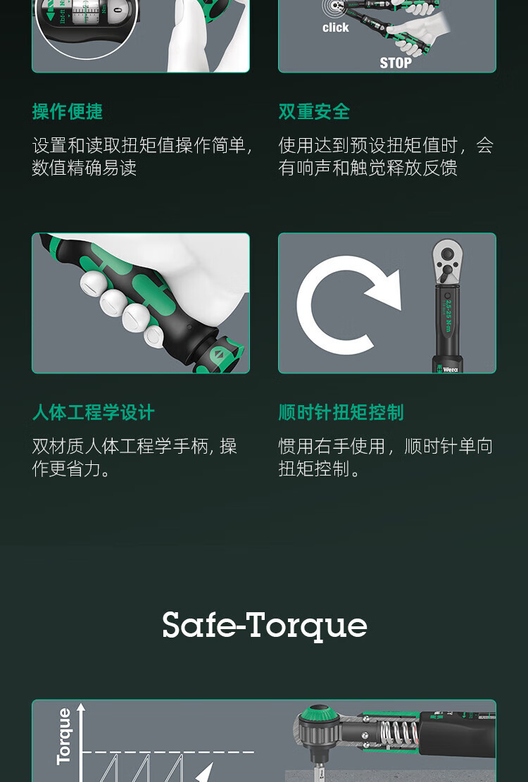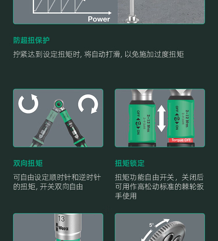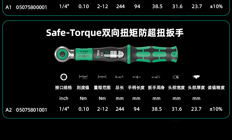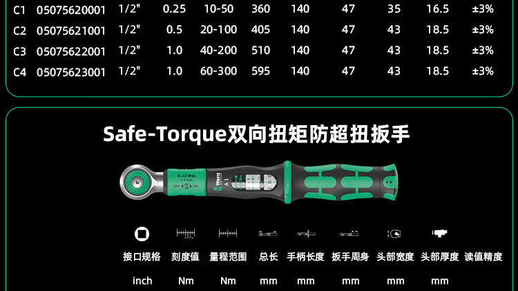 WERA imported torque wrench from Germany two-way adjustable torque ratchet wrench digital display high-precision 4S car repair tool 2/1 Dafei C2 20-100Nm