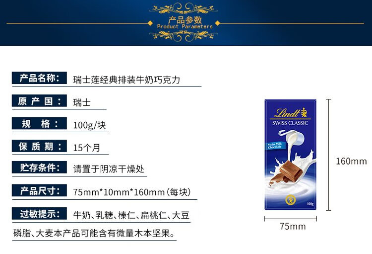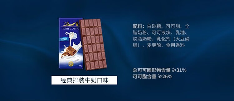 Lindt Milk Chocolate Classic Blocks 100g Imported Snacks Candy Souvenirs Christmas Gifts