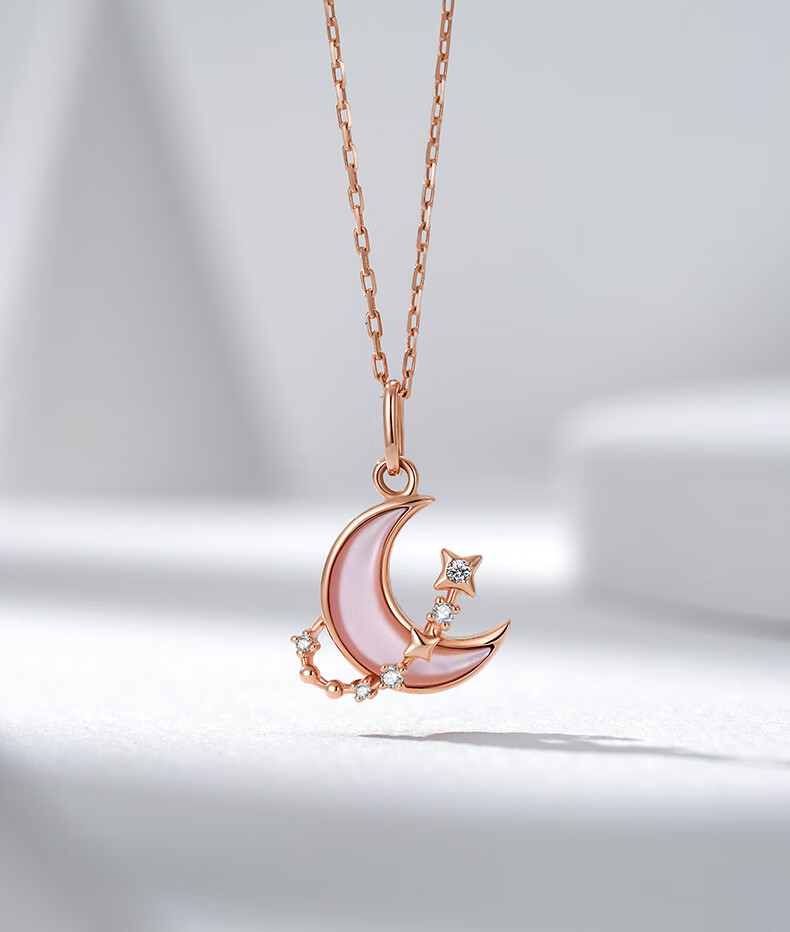 MONOLOGUE Monologue Good Night Star and Moon Necklace Rose K Gold Clavicle Chain Diamond Set Chain MU141 Birthday Gift Premium Recommendation Star and Moon Necklace 37.5cm