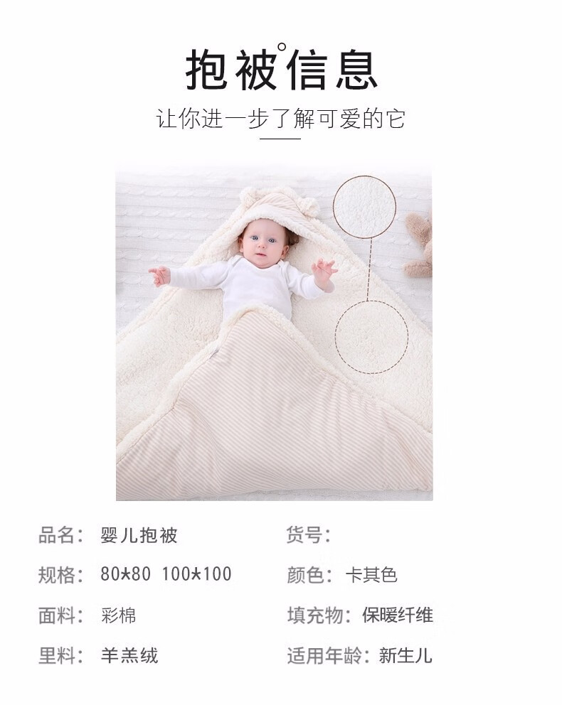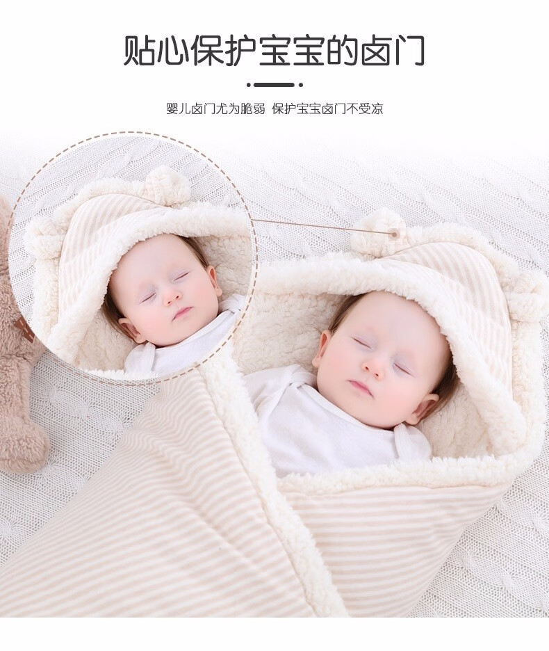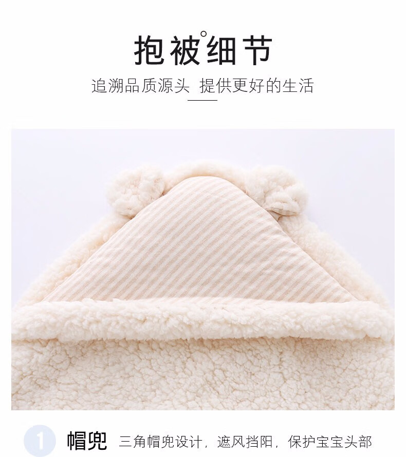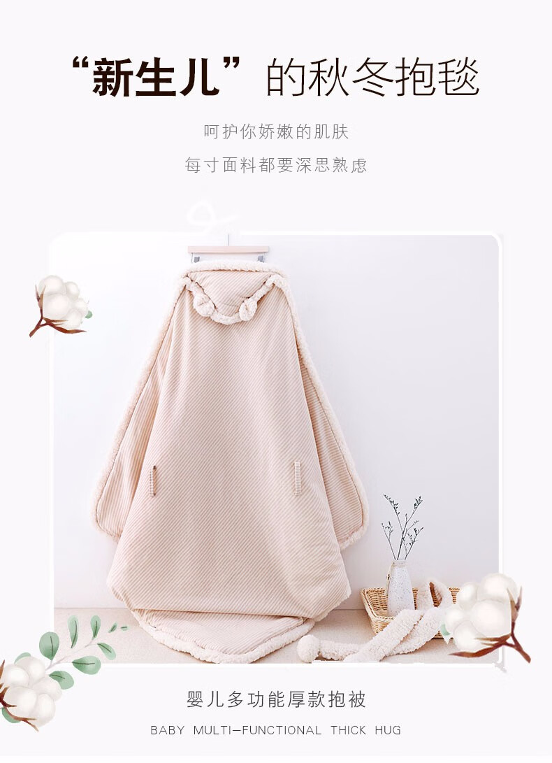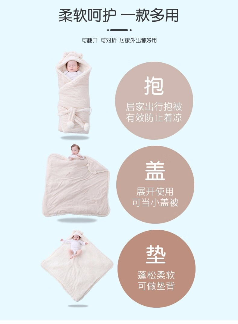 Qi Le Rongrong baby blanket newborn autumn and winter thickened blanket male and female baby anti-jump swaddle newborn supplies warm plus blanket pure cotton delivery room wrap outing small quilt khaki 100*100cm