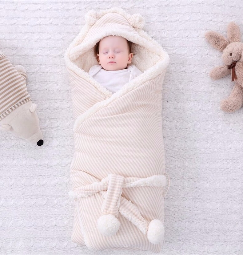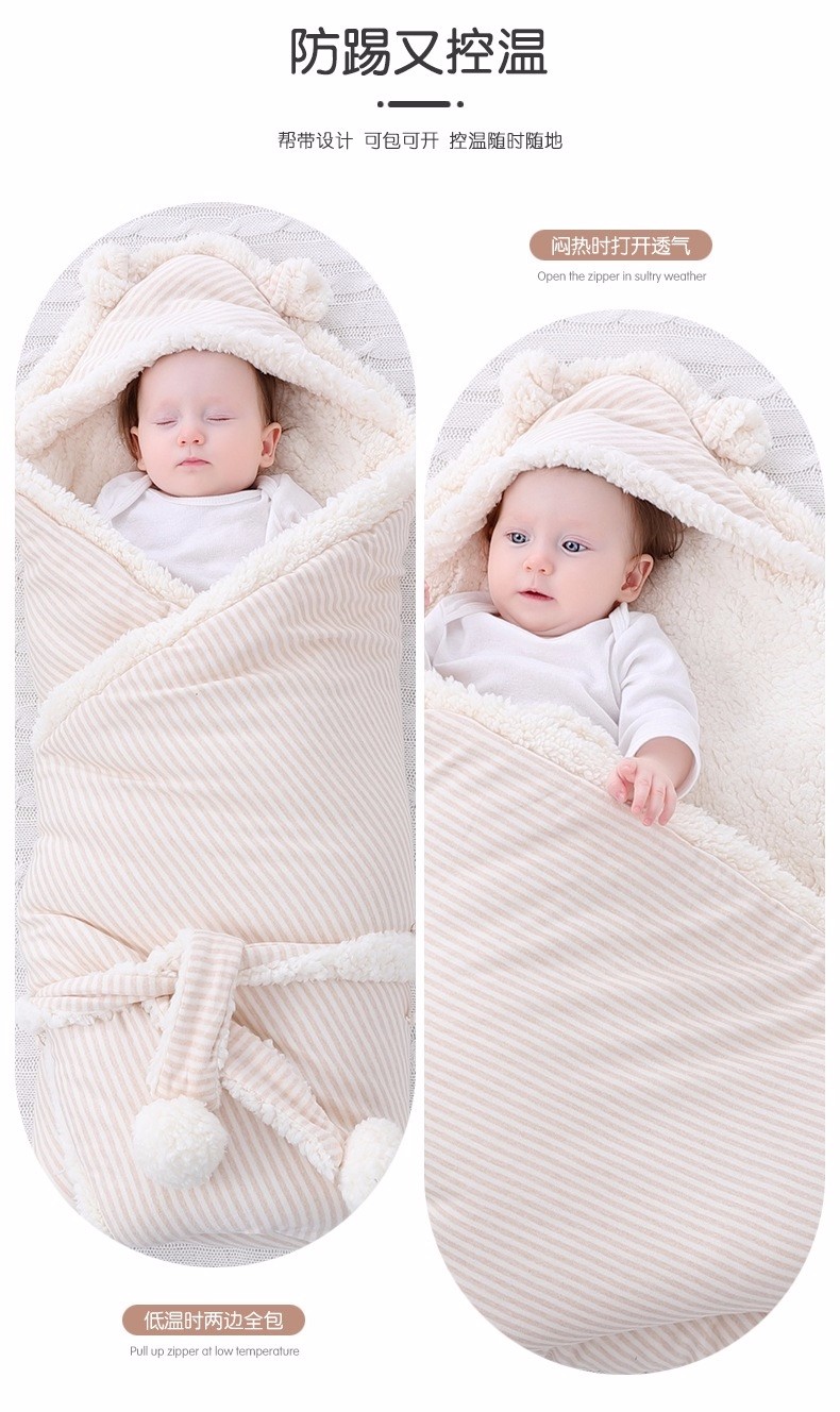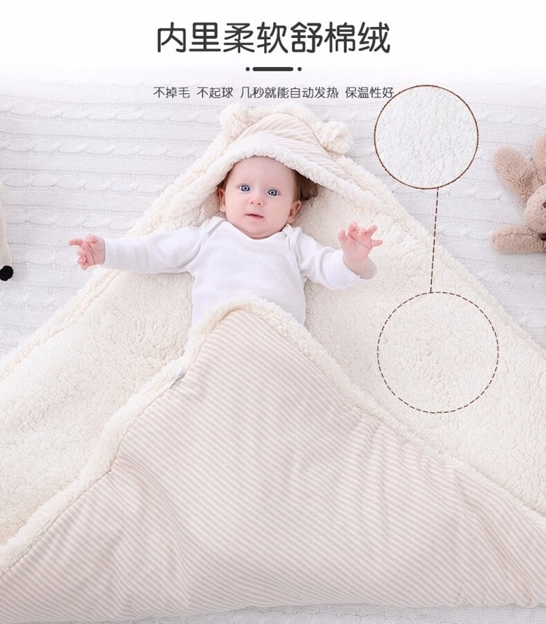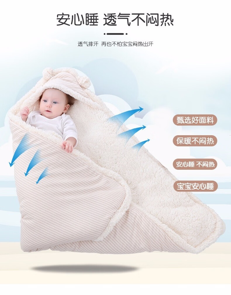 Qi Le Rongrong baby blanket newborn autumn and winter thickened blanket male and female baby anti-jump swaddle newborn supplies warm plus blanket pure cotton delivery room wrap outing small quilt khaki 100*100cm