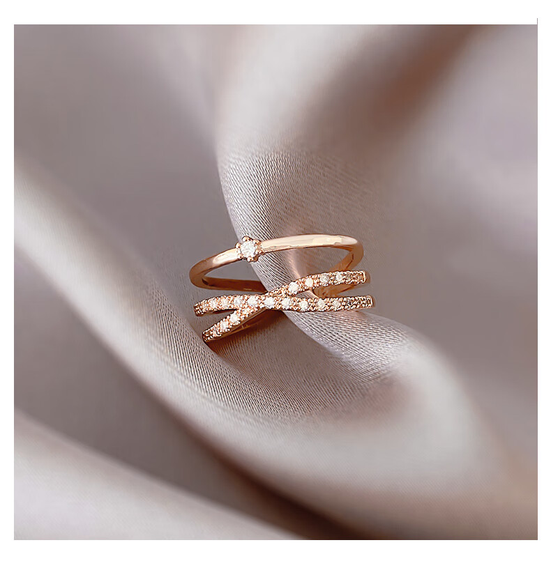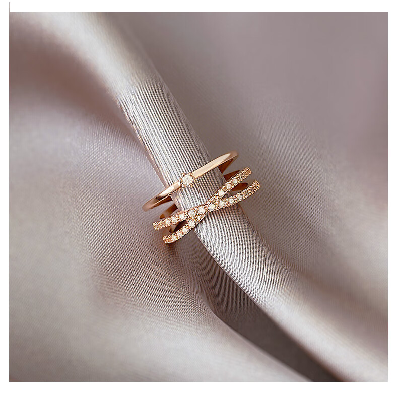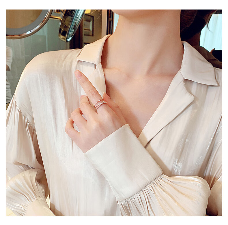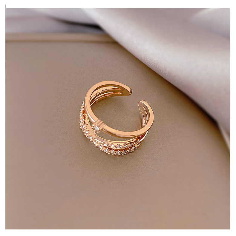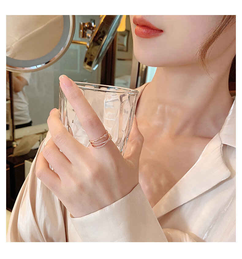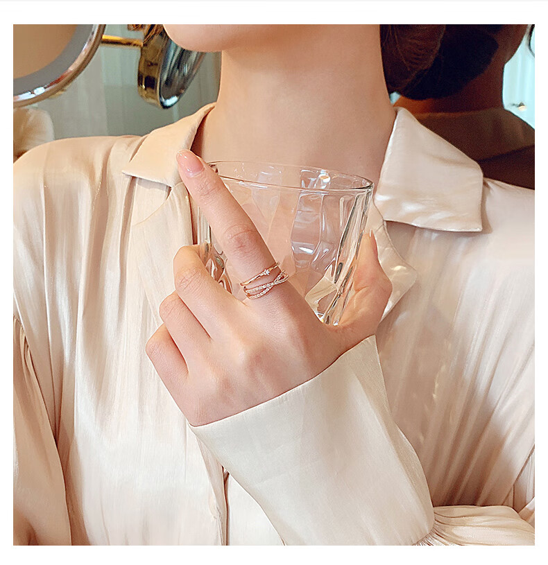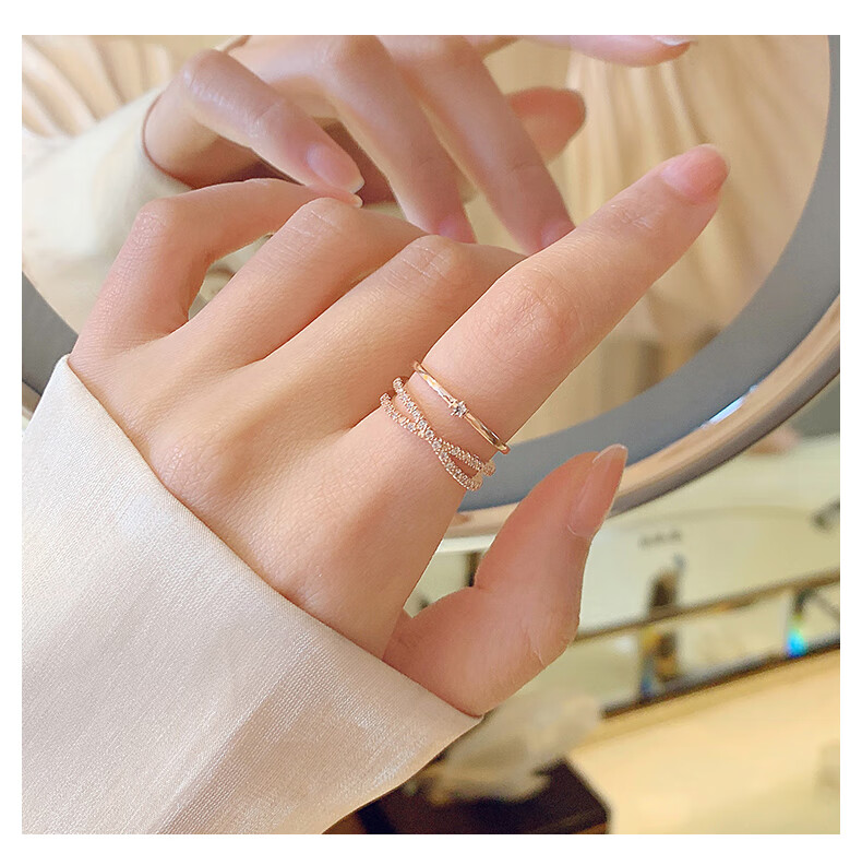 Xiaose ins trendy index finger ring for women, niche design, fashionable personality, light luxury, high-end, cold style index finger ring opening, flash diamond ring R0048 (rose gold)