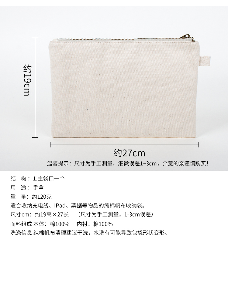 YONBEN/Yuanbenliangchang Pure Cotton Canvas Storage Bag IPad Bag Envelope Bag Clutch Bag Liner Bag Medium Bag Dark Brown