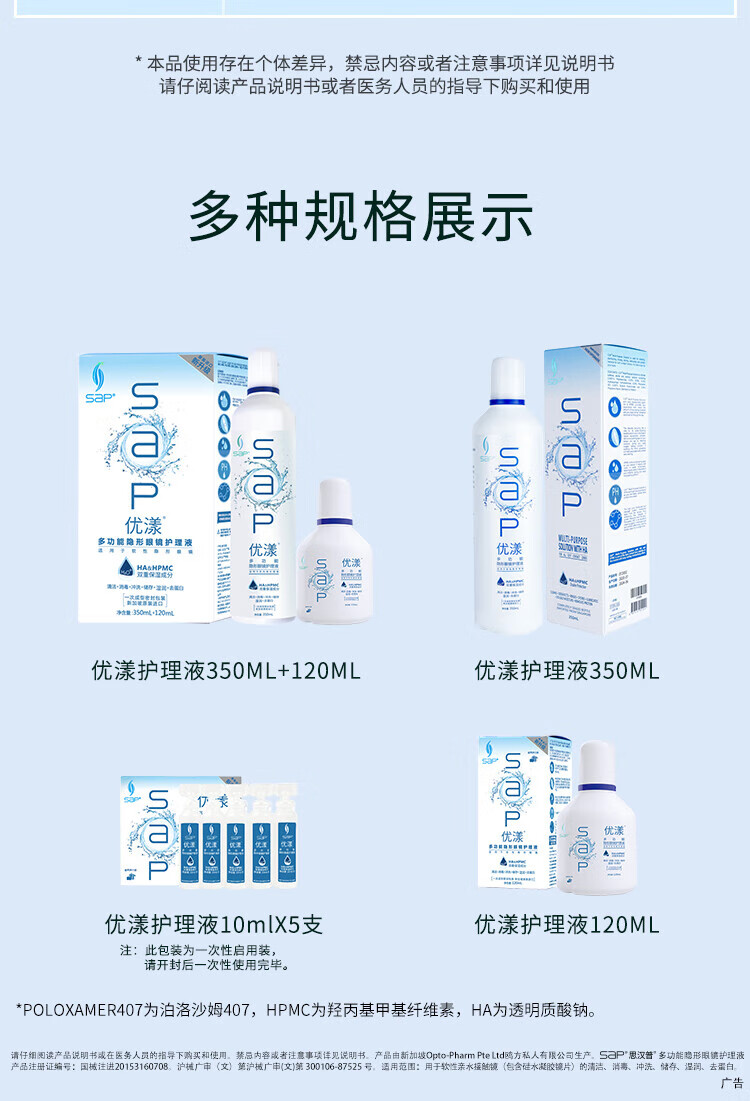 SAP Sihampu Color Contact Lens Multifunctional Contact Lens Care Solution imported from Singapore for general cleaning and protein removal 120ml