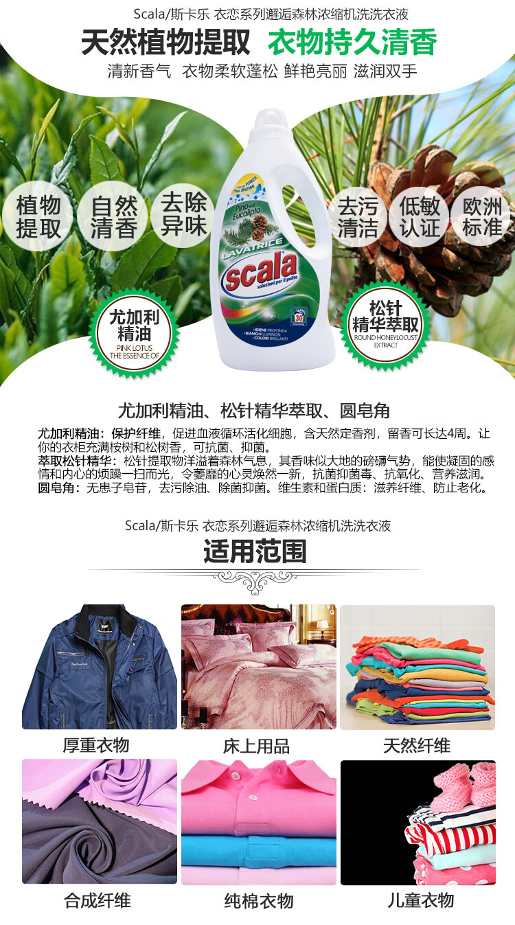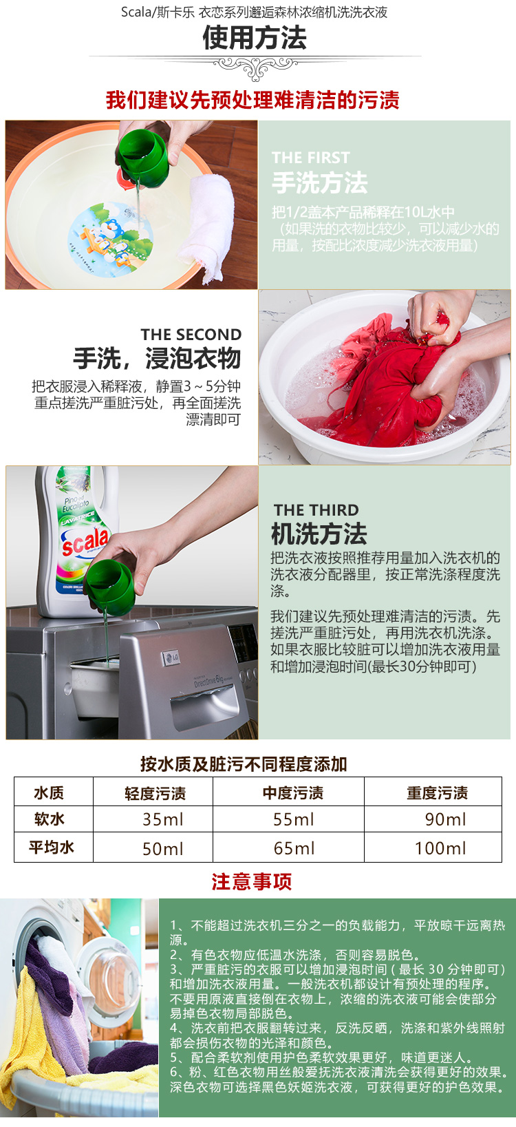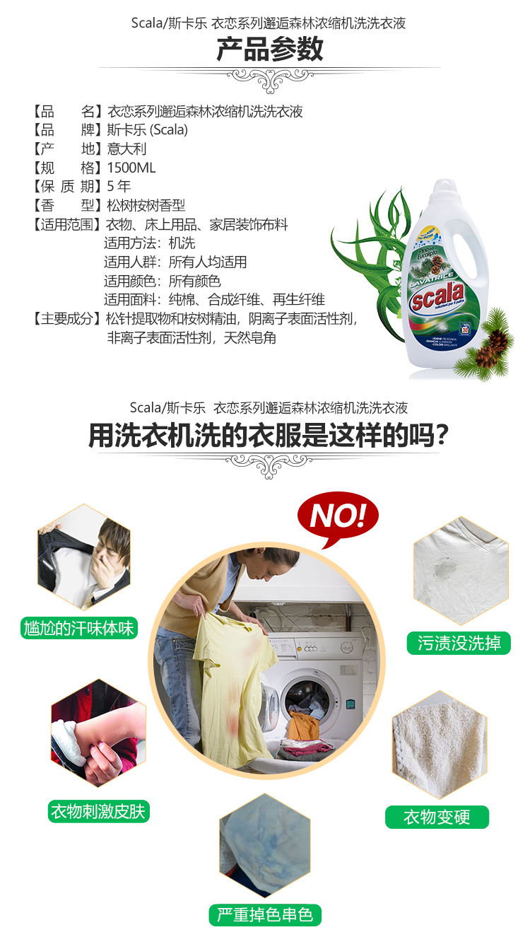 Scala laundry detergent imported from Europe concentrated sterilization environmentally friendly clothing detergent plant extract machine washable 1.5L