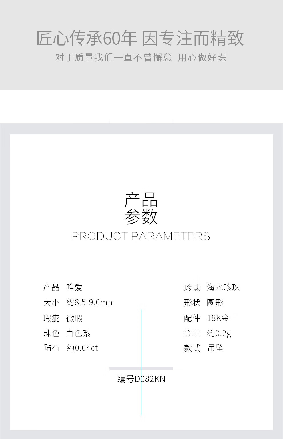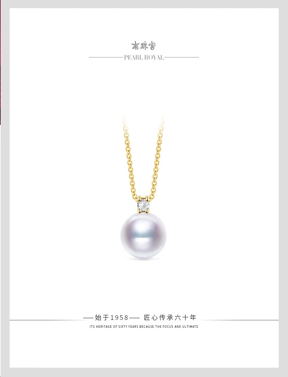 Nanzhu Palace Weiai Seawater Pearl Pendant Princess Style 18K Gold Inlaid with Diamonds White Highlight 18K Yellow 8.5-9.0mm