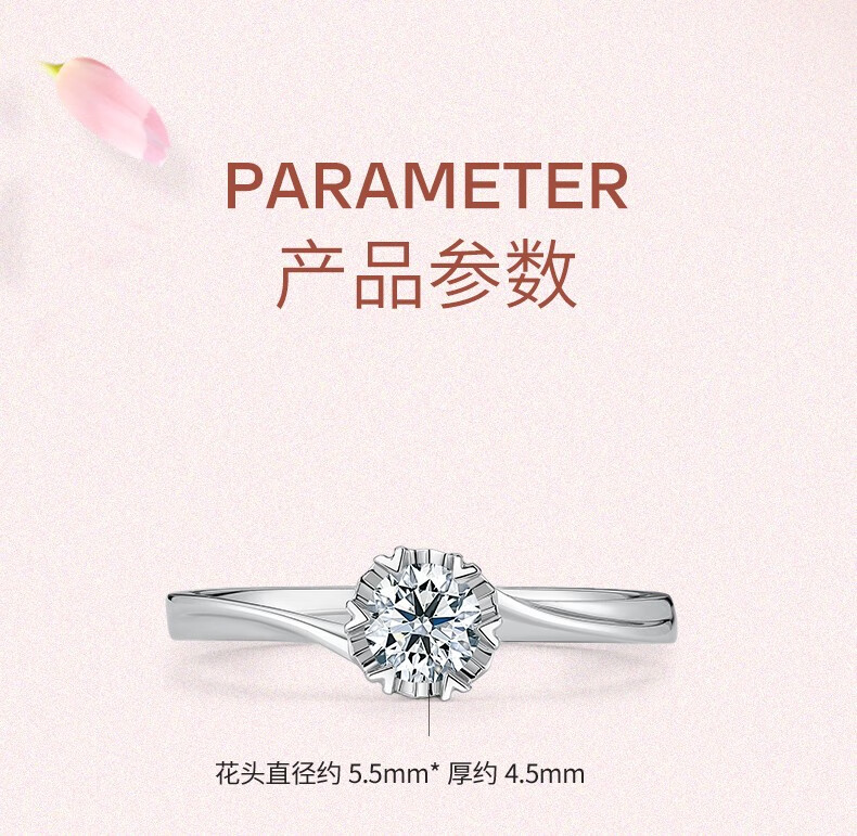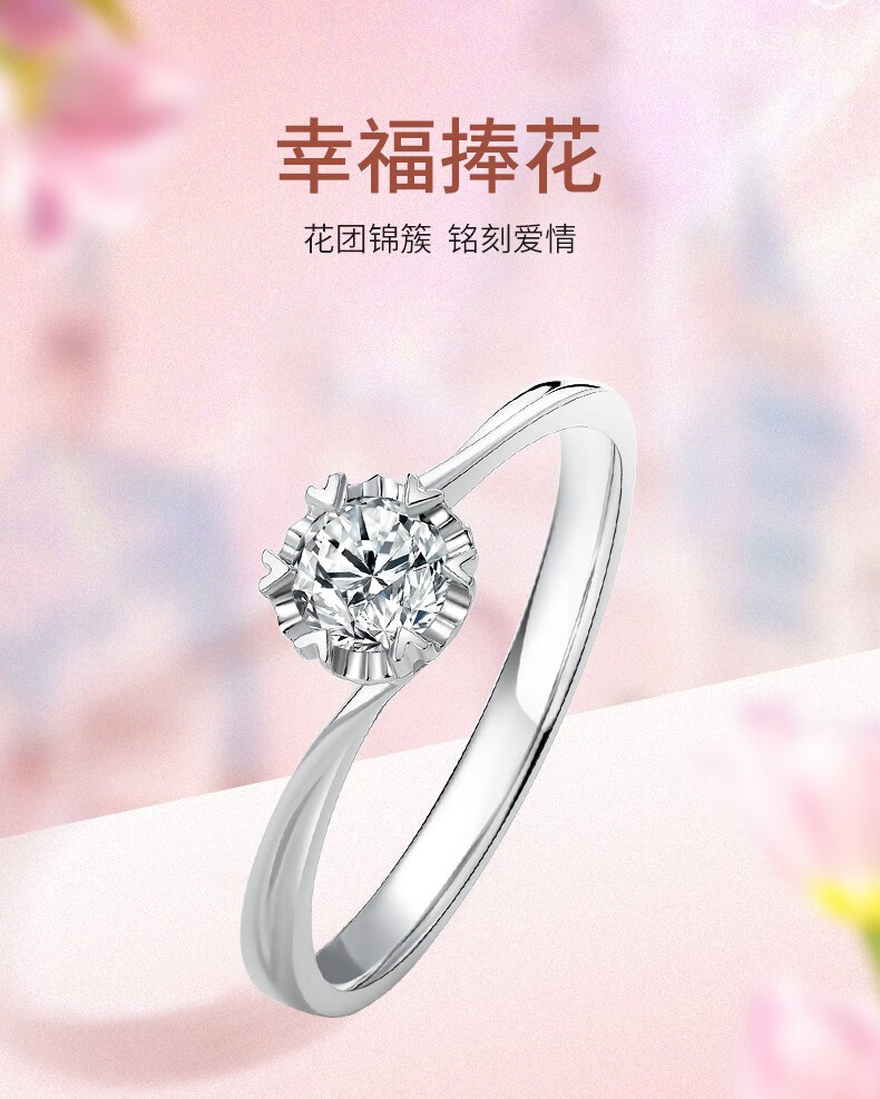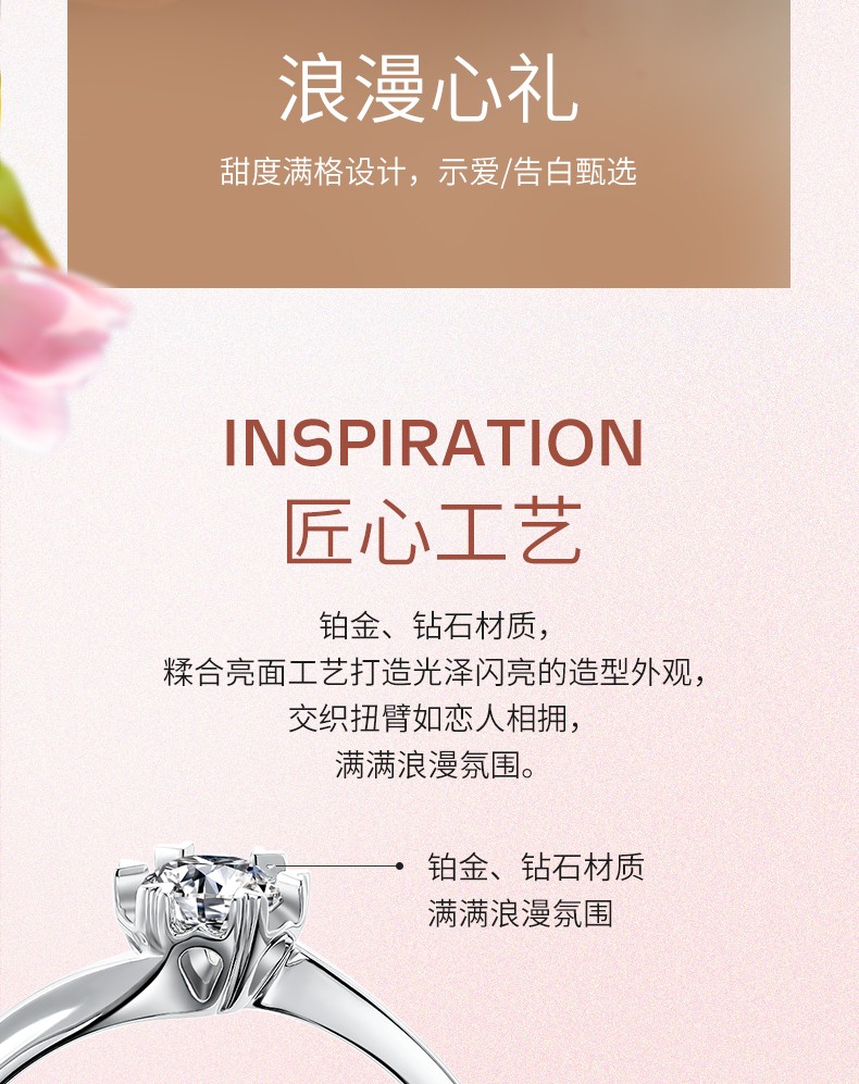 Saturday Fortune (ZLF) PT950 platinum diamond ring for women six-claw proposal wedding diamond ring for girlfriend holiday gift 30 points SI/IJ No. 16 platinum