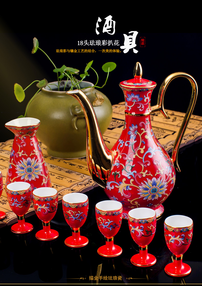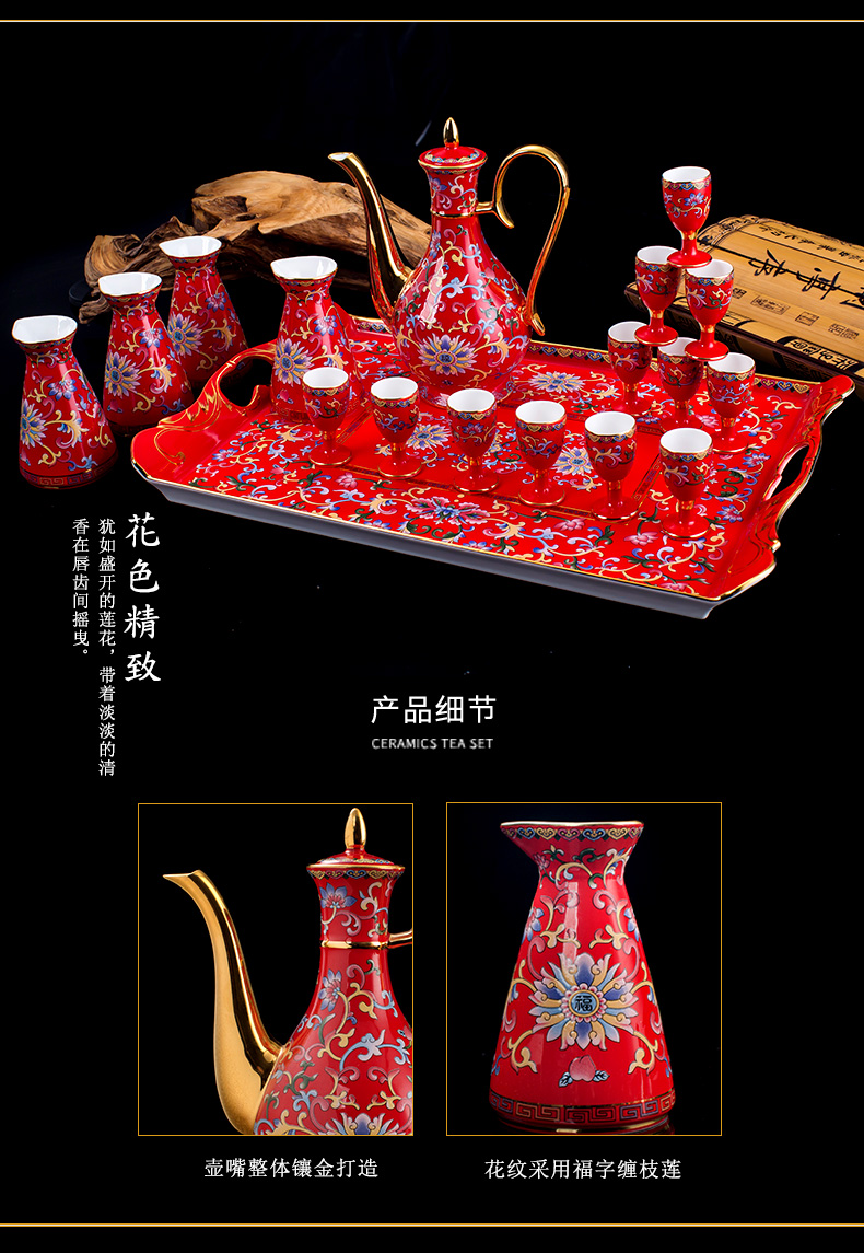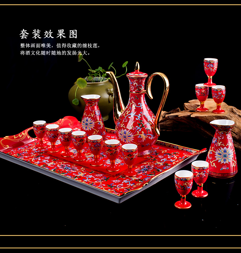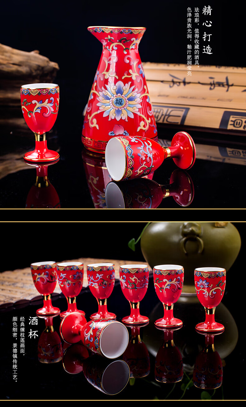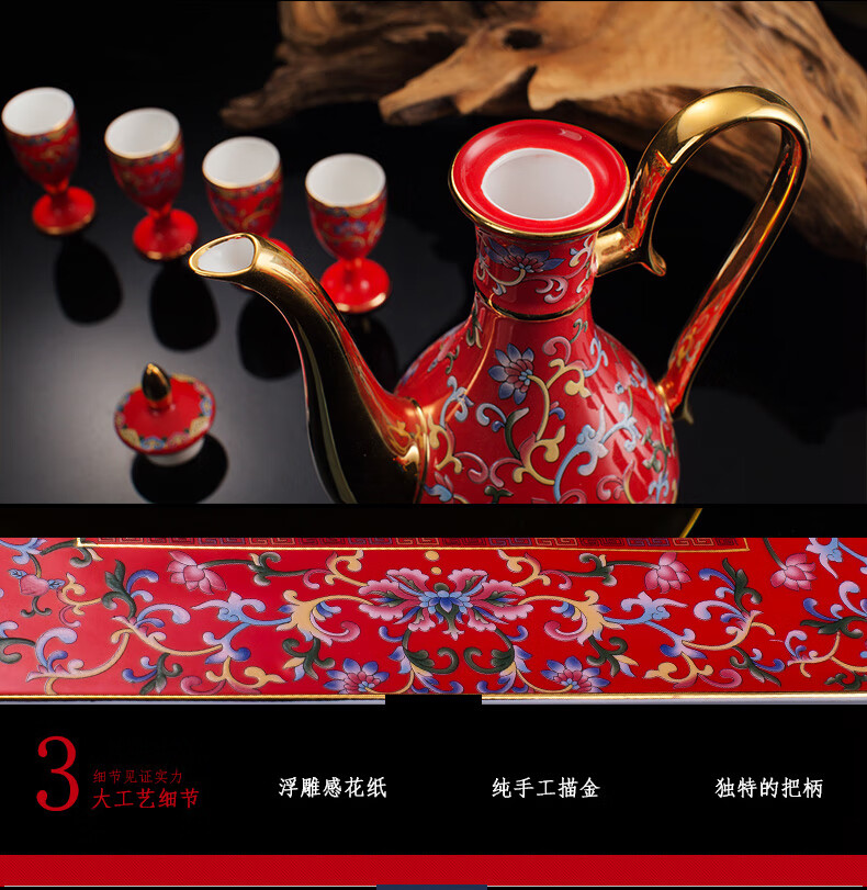 Xinguo Longxuan Jingdezhen Chinese red porcelain palace enamel color painted gold creative wine set flask set white wine cup gift box A