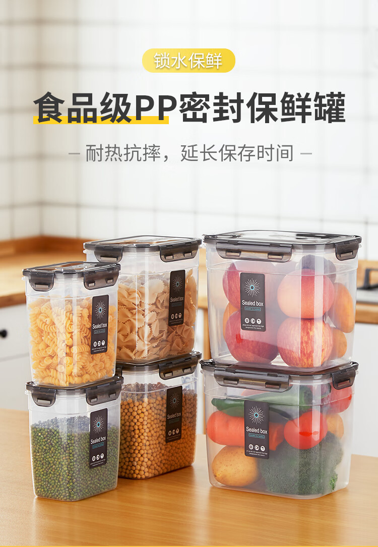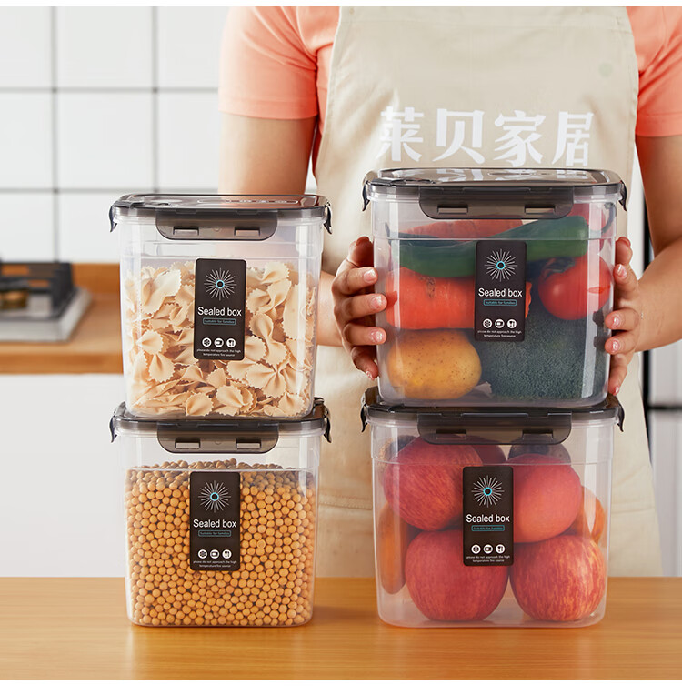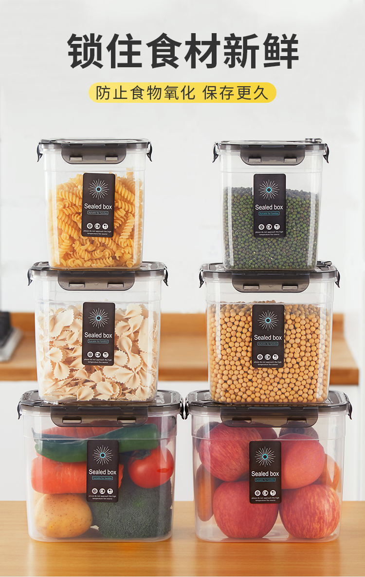RYBACK grain storage box food-grade sealed jar kitchen insect-proof and moisture-proof rice bucket storage jar refrigerator storage box three-piece set 1400+2500+3800 (ml)