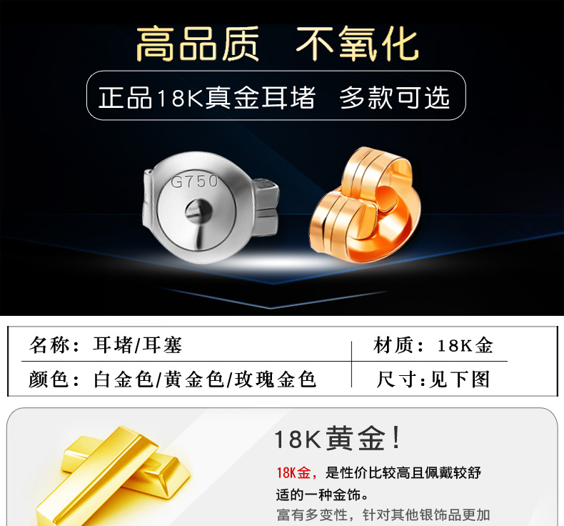 Luohe 18k gold ear plugs, ear stud buckles, women's rose gold color gold platinum ear studs, back plugs, ear accessories, gold ear plugs, style 2, rose gold ear plugs (one)