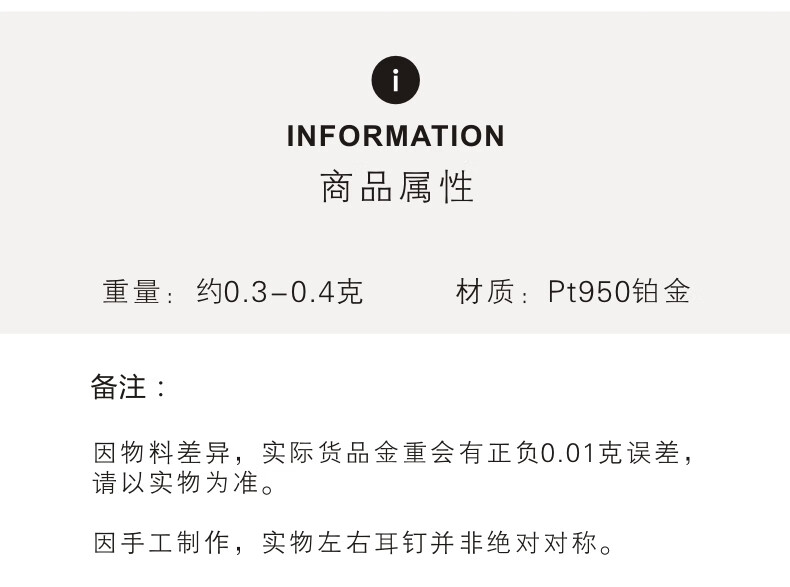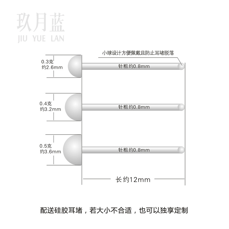 Luohe Pt950 platinum earrings ear stick platinum round ball solid simple beans custom-made for women and men small mushroom Christmas platinum earrings 0.3g (single)