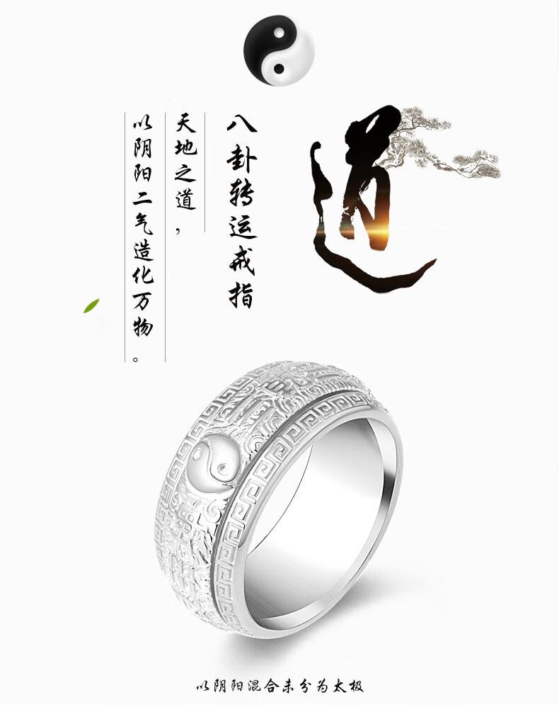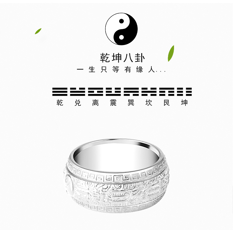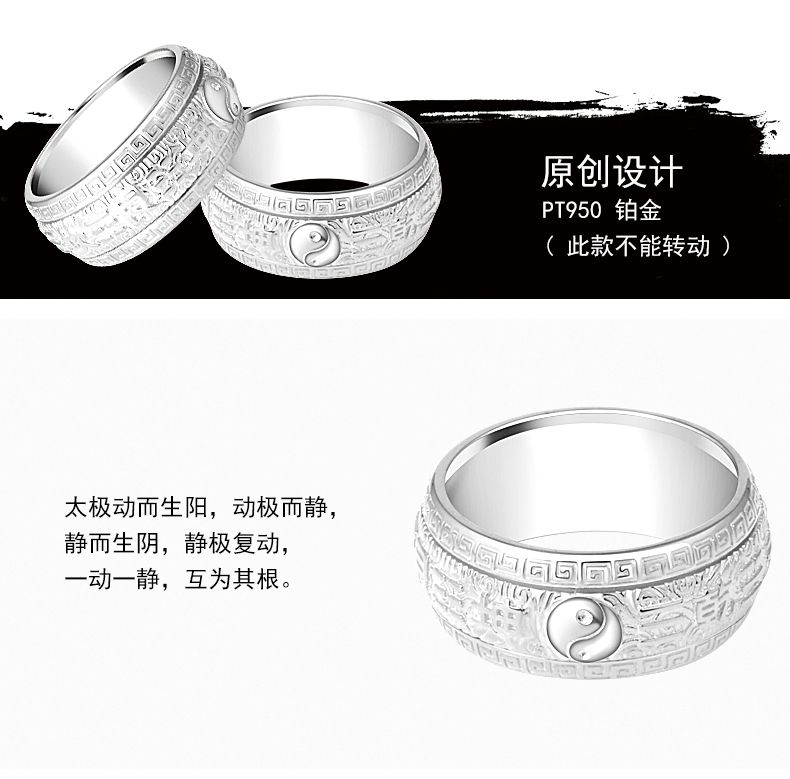 Luohe SF direct pt950 platinum ring for men domineering Taoist Yin Yang fish Tai Bagua personality wide version index finger customized size 15 to 19 25g