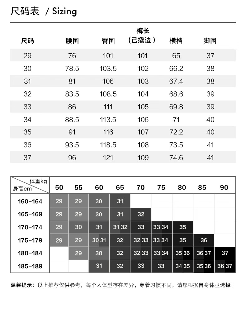 Outseam (cm) 99 cm 101.5 cm 104 cm 106.5 cm 109 cm