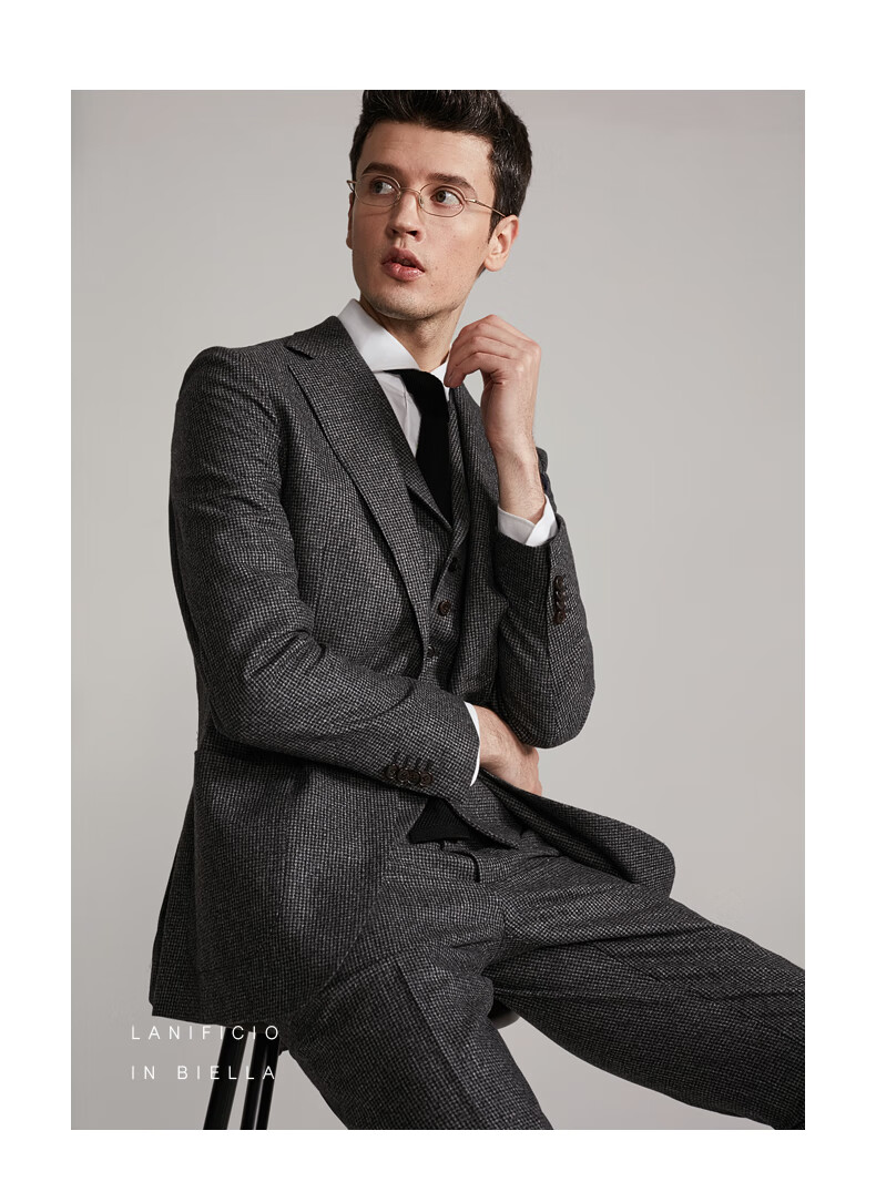 FULL MONTY imported VBC houndstooth suit suit men's light business high-end light luxury groom's suit wedding formal wear 48