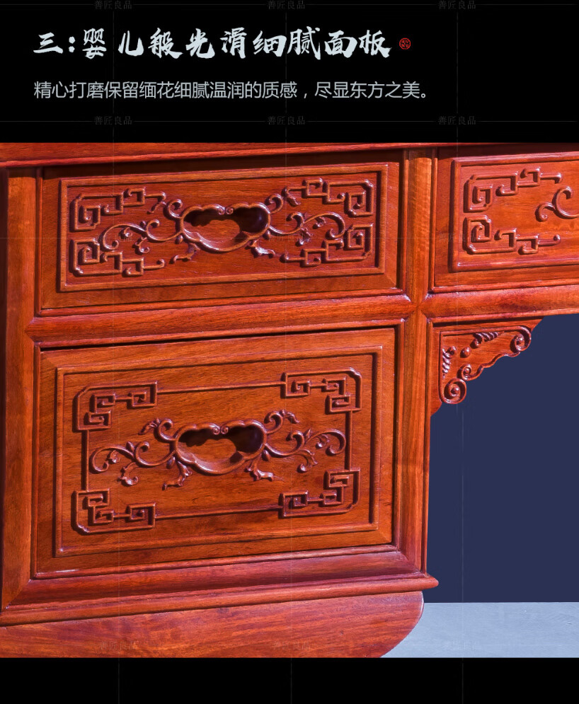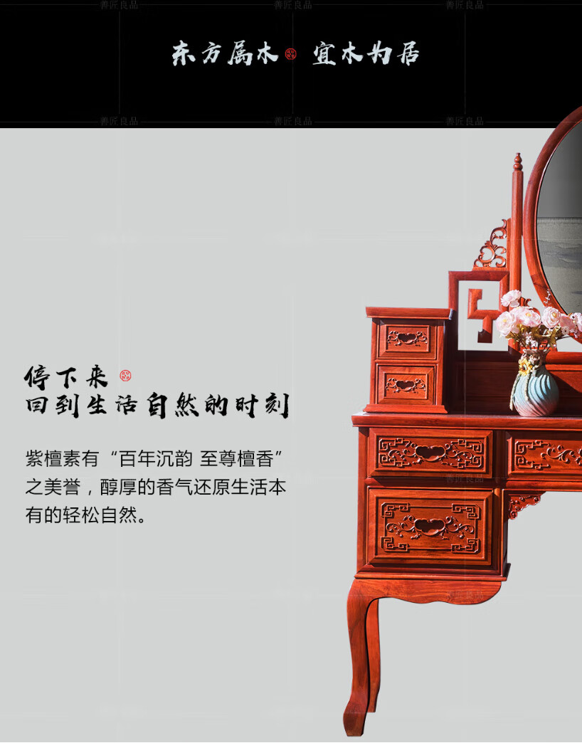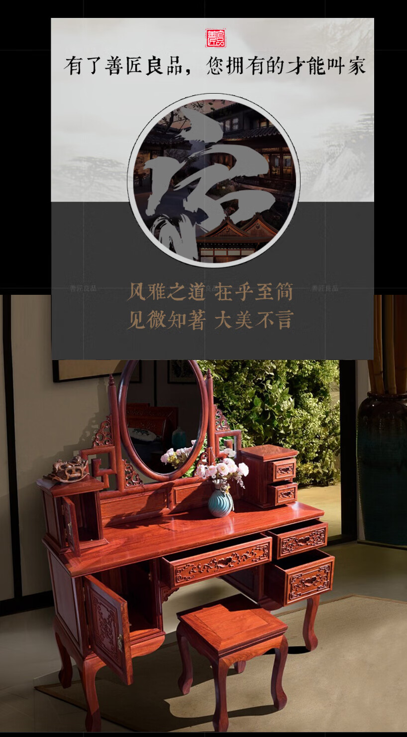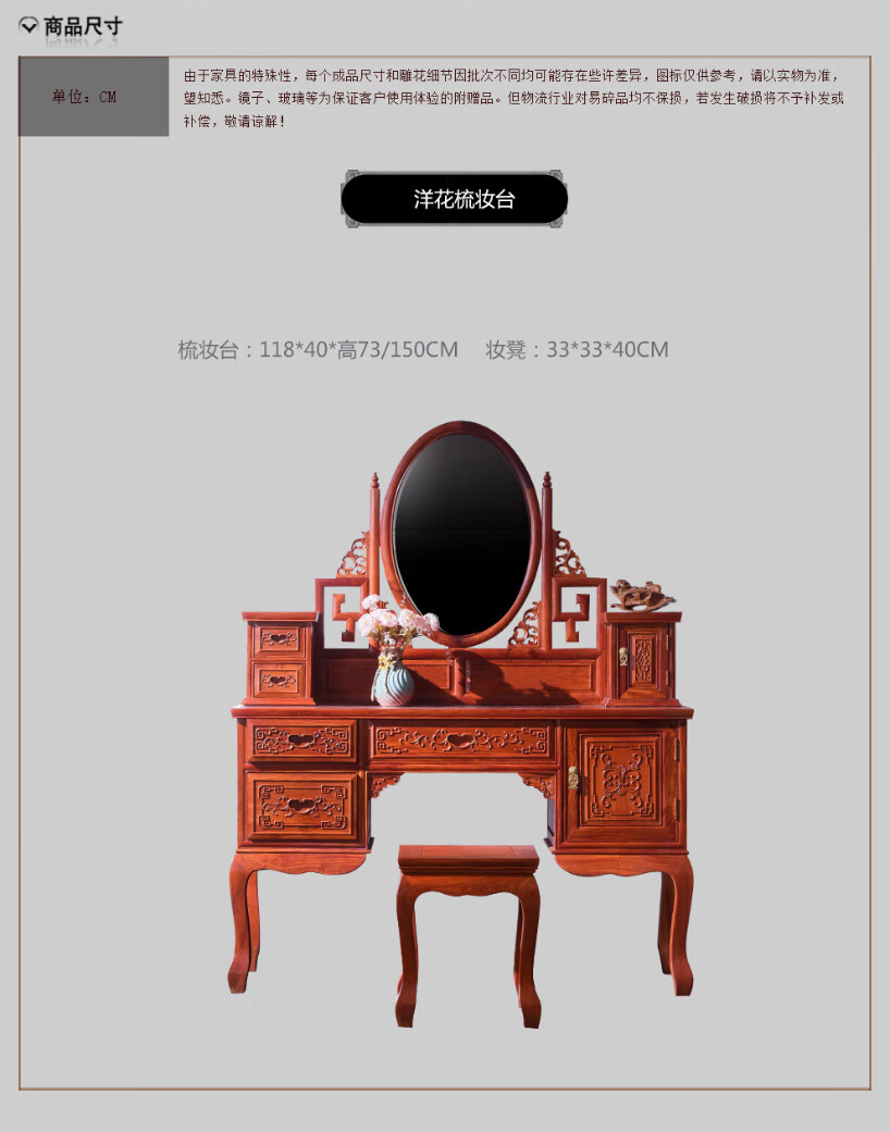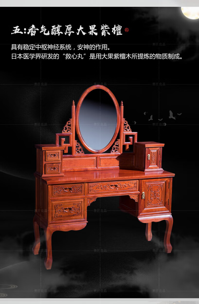 Good craftsman and good product, mahogany furniture, Burmese rosewood (scientific name: Big fruit rosewood), Chinese style dressing table solid wood with lockers and drawers dressing table combination, foreign flower dressing table + dressing stool combination