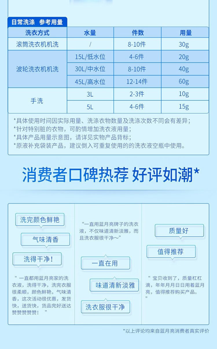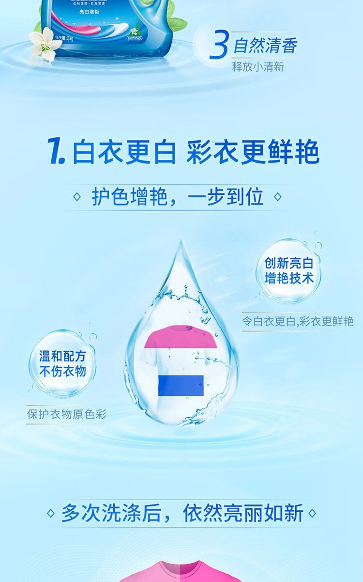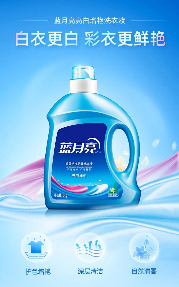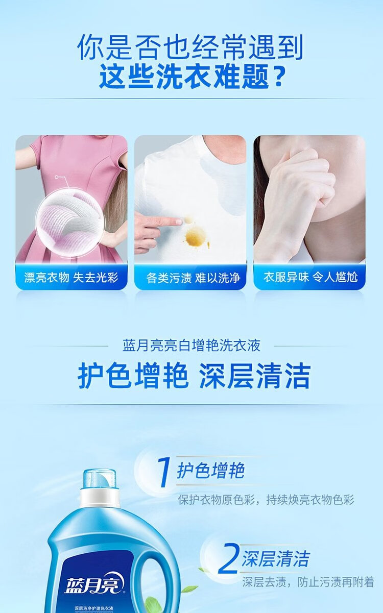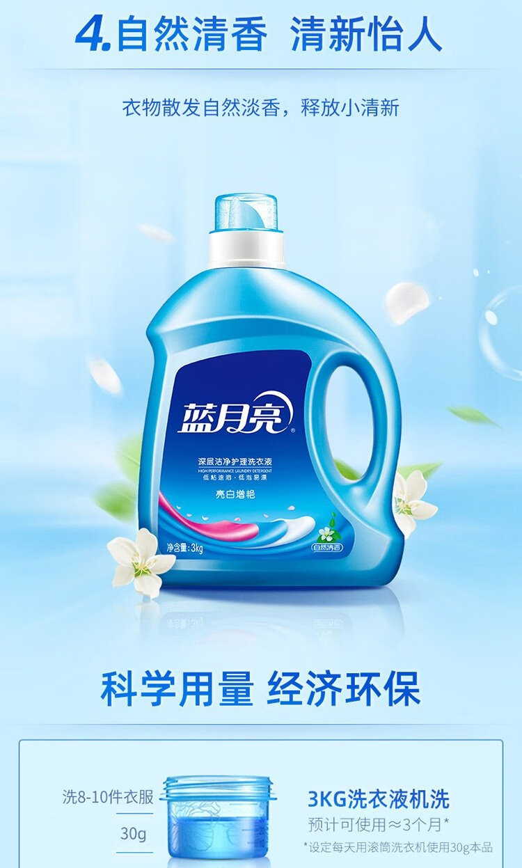 Blue Moon Brightening and Brightening Laundry Detergent with Natural Fragrance 3kg/Bottle Color Protection and Brightening Cleansing and Decontamination Removal
