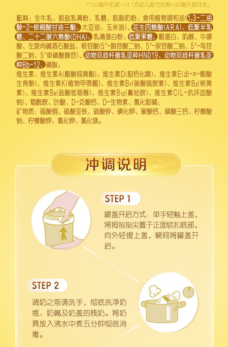Yili Jinling Guanyusu 5 times DHA good brain power infant formula milk powder 3 stages (1-3 years old) 960g