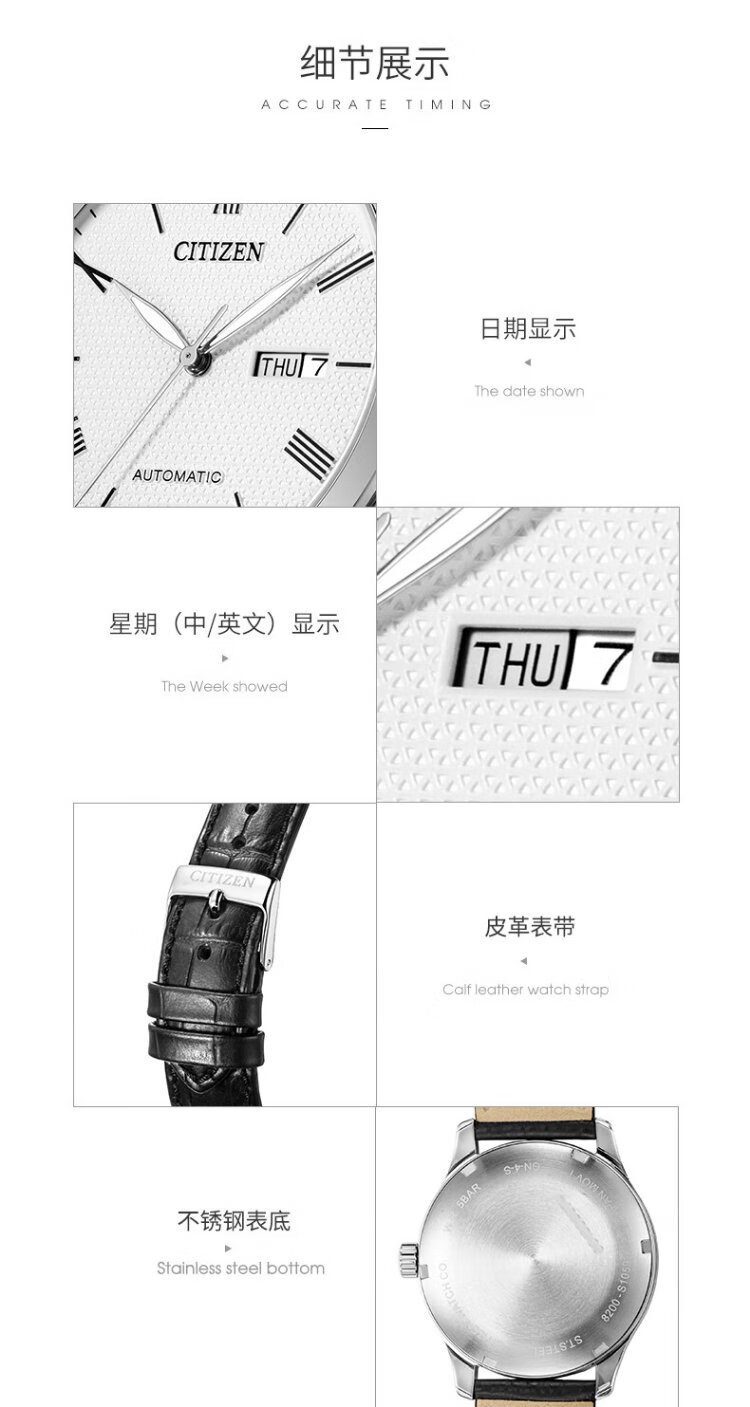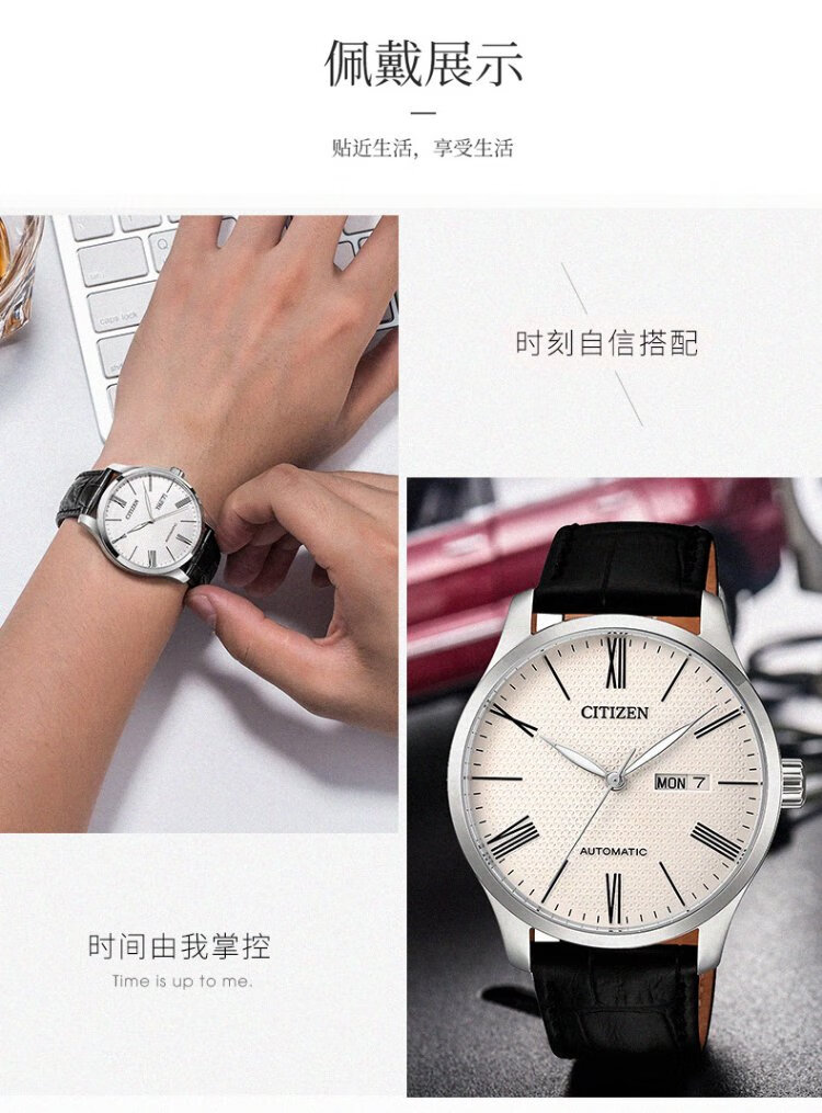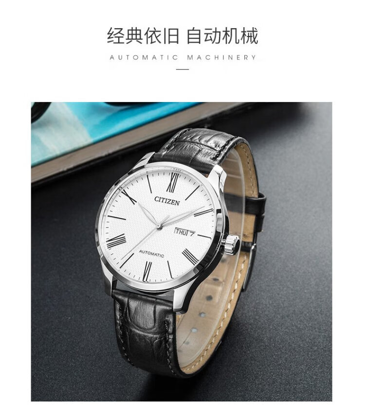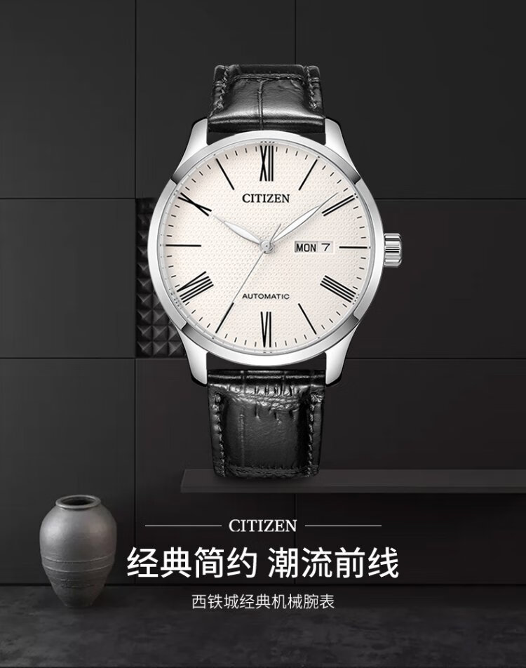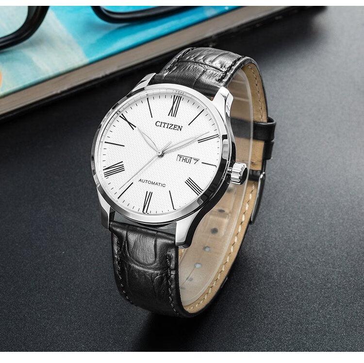 CITIZEN watch men's Japanese and Korean watch automatic mechanical white plate day display belt business Christmas gift NH8350-08A