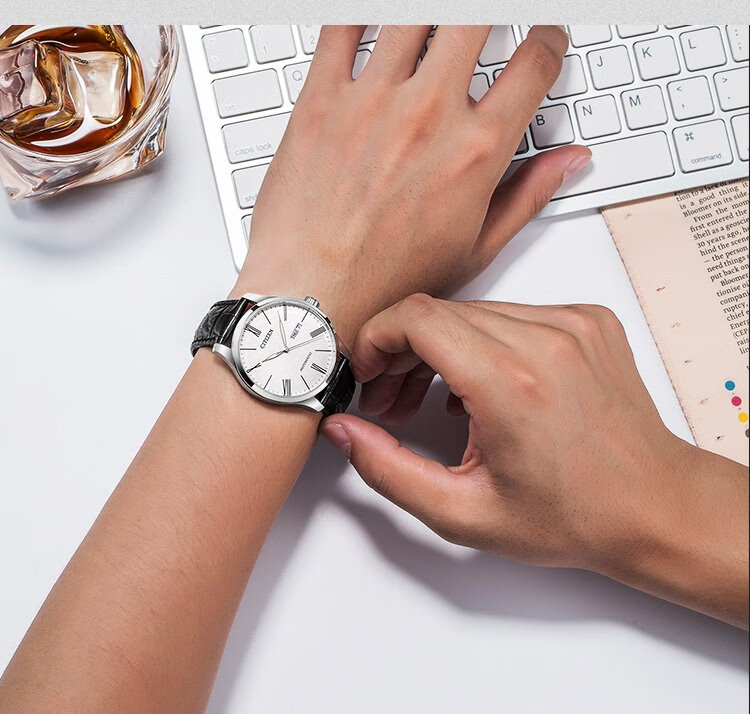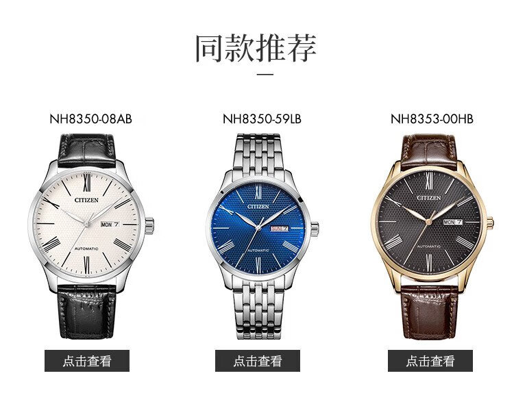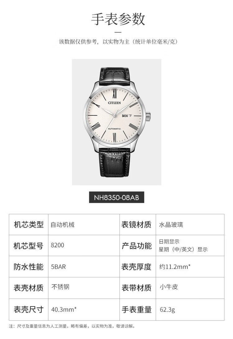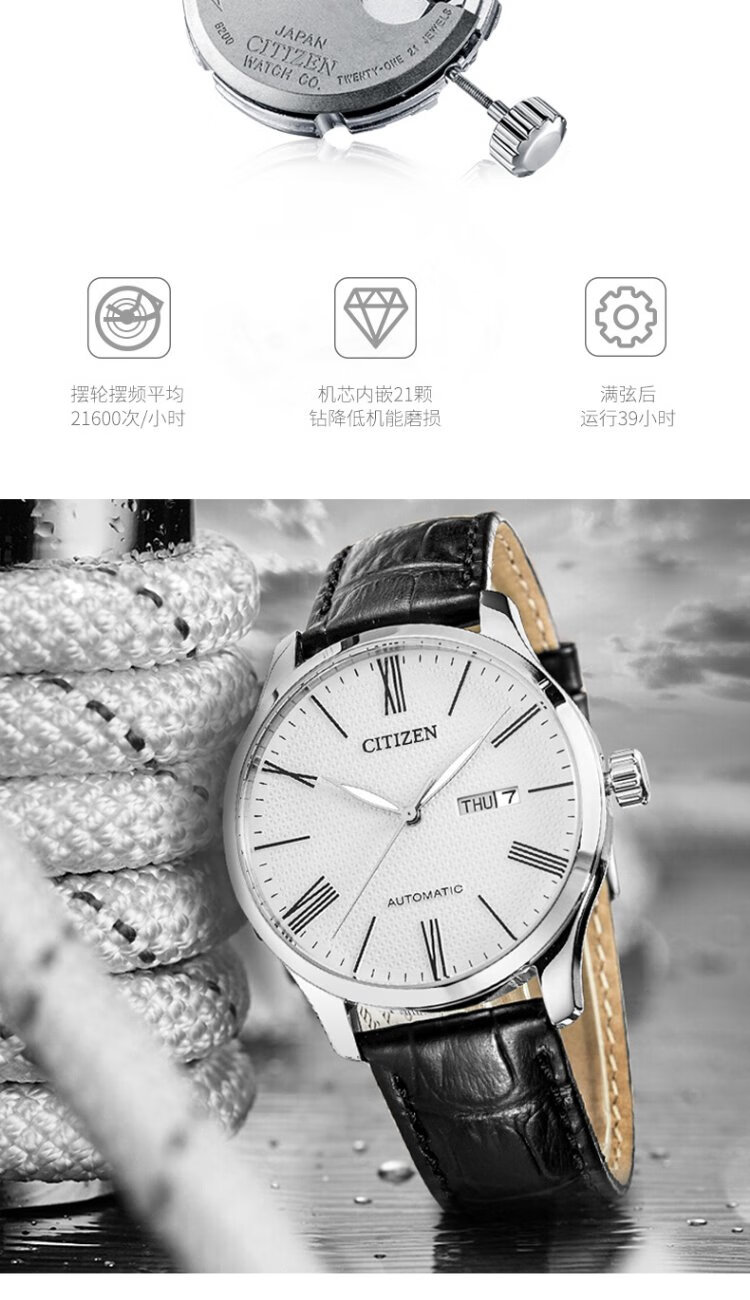 CITIZEN watch men's Japanese and Korean watch automatic mechanical white plate day display belt business Christmas gift NH8350-08A