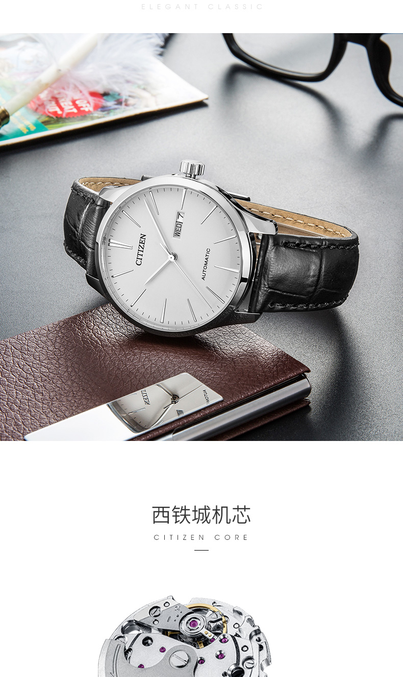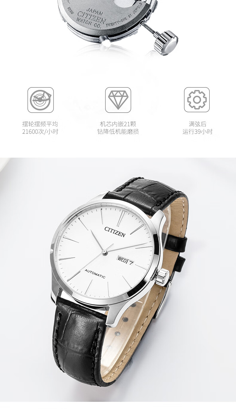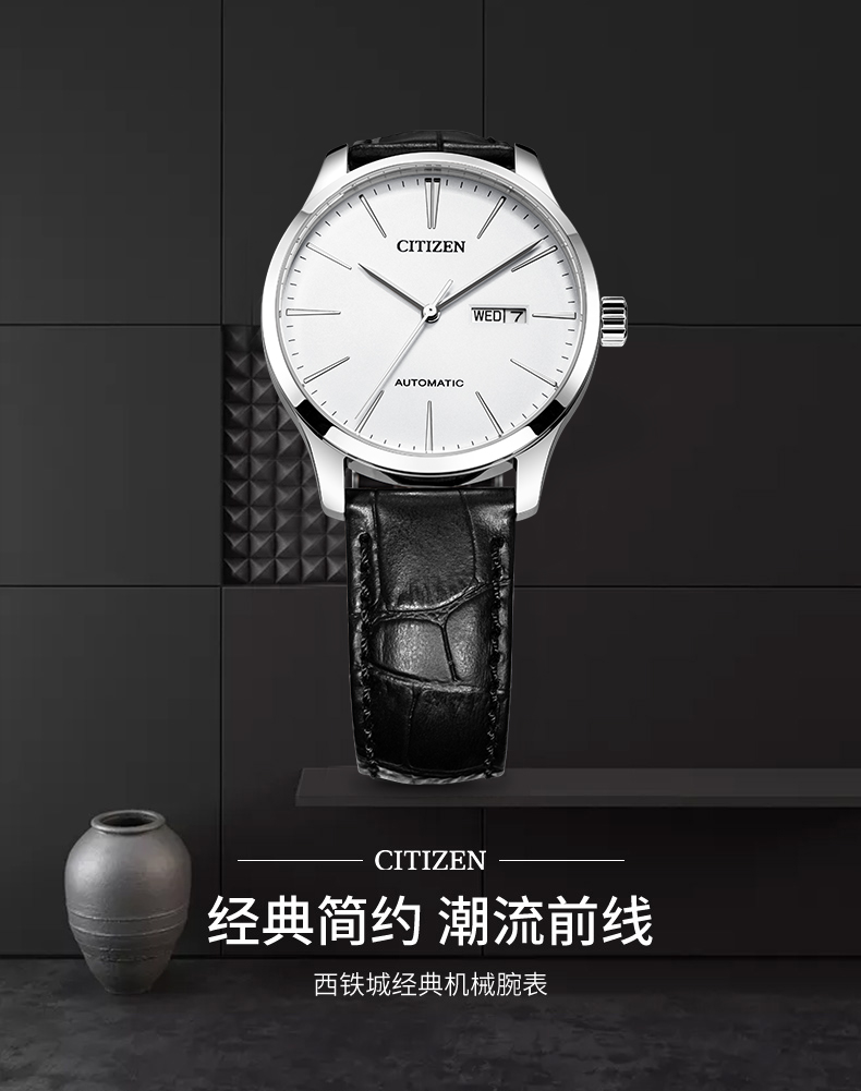 CITIZEN watch men's Japanese and Korean watch automatic mechanical white plate belt minimalist business Valentine's Day gift NH8350-08B