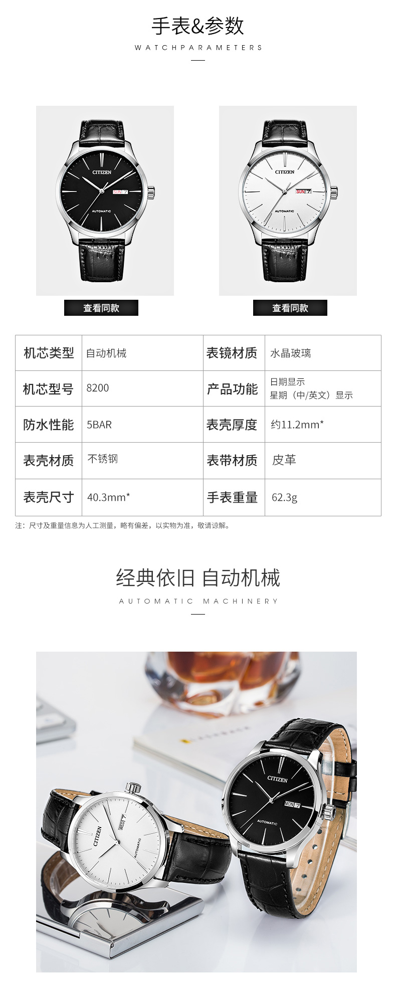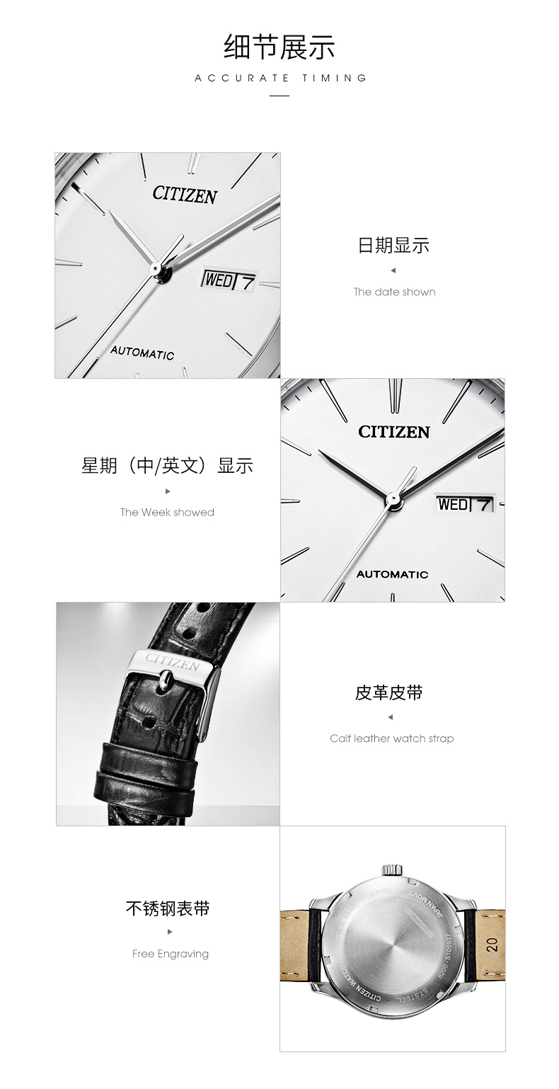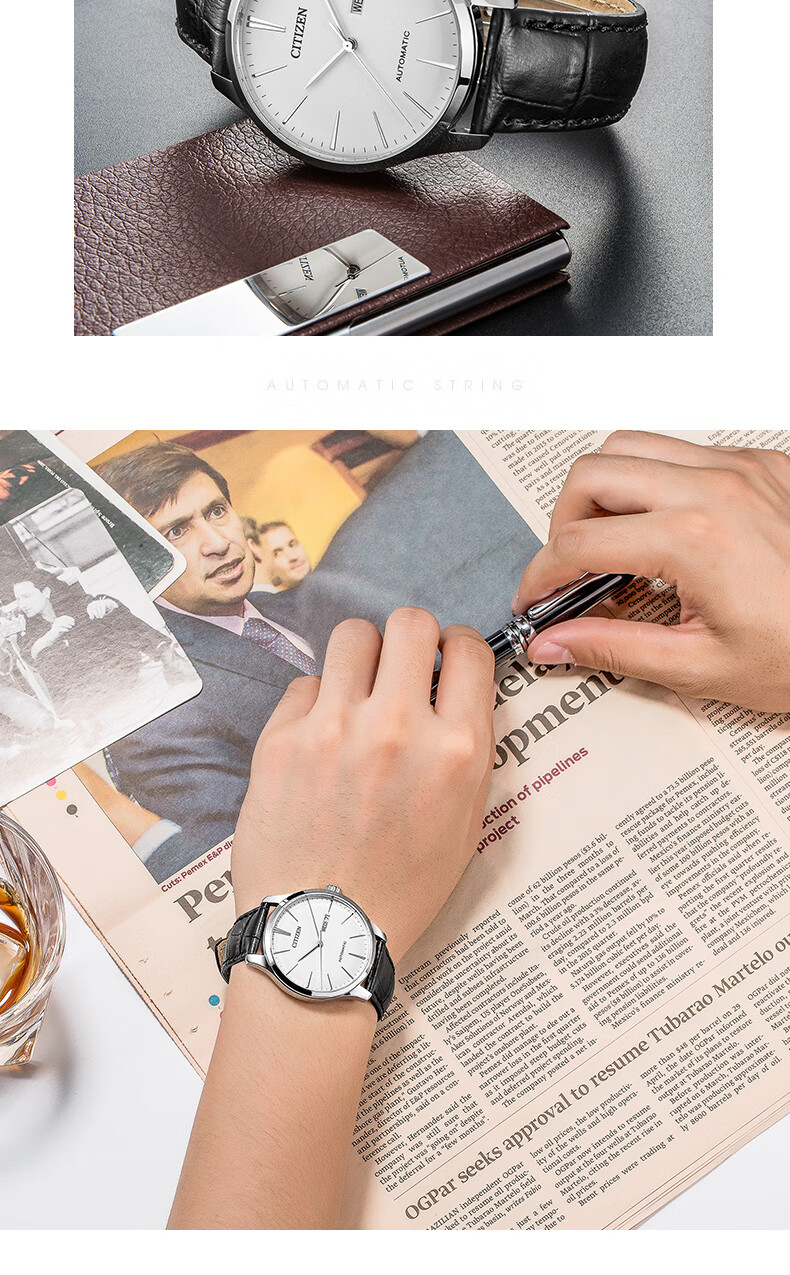 CITIZEN watch men's Japanese and Korean watch automatic mechanical white plate belt minimalist business Valentine's Day gift NH8350-08B